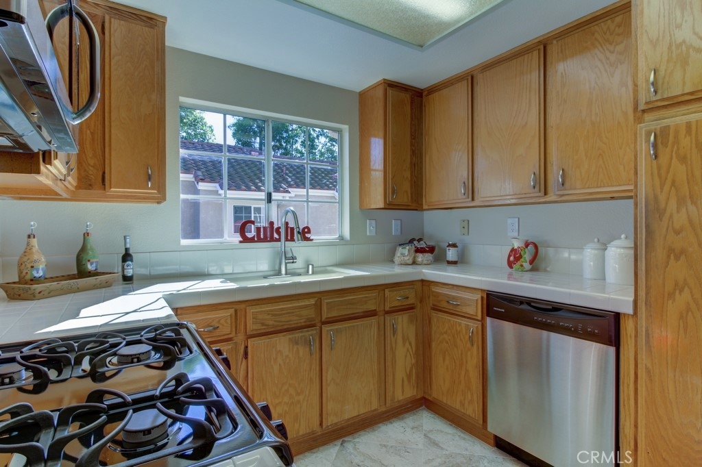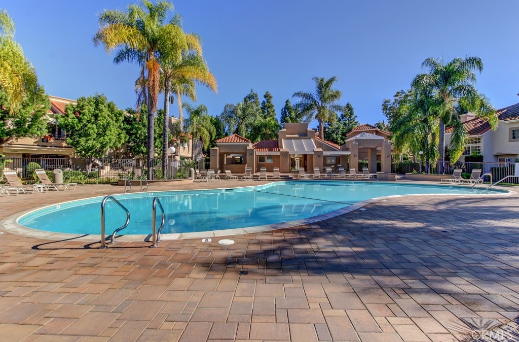 This lovely and very clean 2 bedroom, 2 bathroom end unit is located in the highly sought after gated community of Village Niguel Terrace. Upstairs unit with nobody above or below. The open floor plan has vaulted ceilings and easy to maintain laminate flooring in the living room and bedrooms. Tile flooring in the kitchen & upgraded bathrooms. One car garage and space for one additional permitted parking. Unit includes stainless steel refrigerator and stackable washer/dryer. Newer central AC system. Private location with two balconies/decks – one off the front porch and other off the master bedroom. Community has been repiped with pex in 2016. There is no Mello Roos. HOA amenities include: Pool, spa, tennis court, trash, water, and sewer. Located convenient to restaurants, shopping, grocery stores and freeways.
