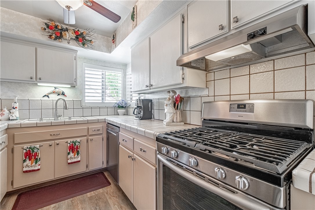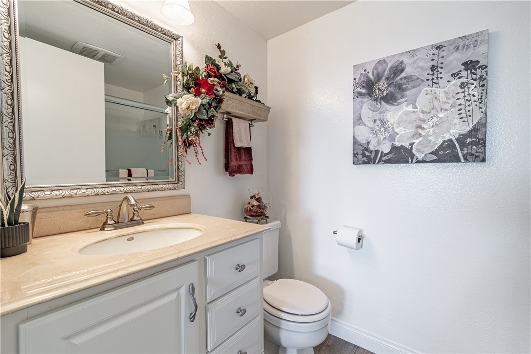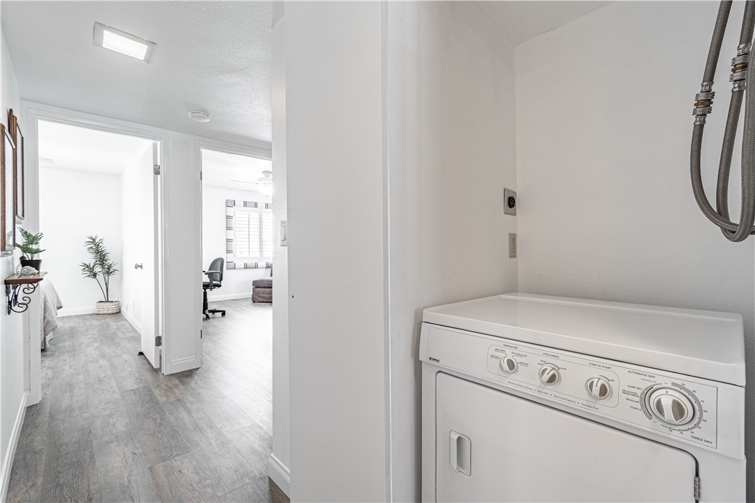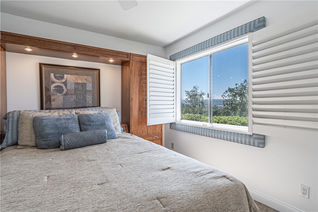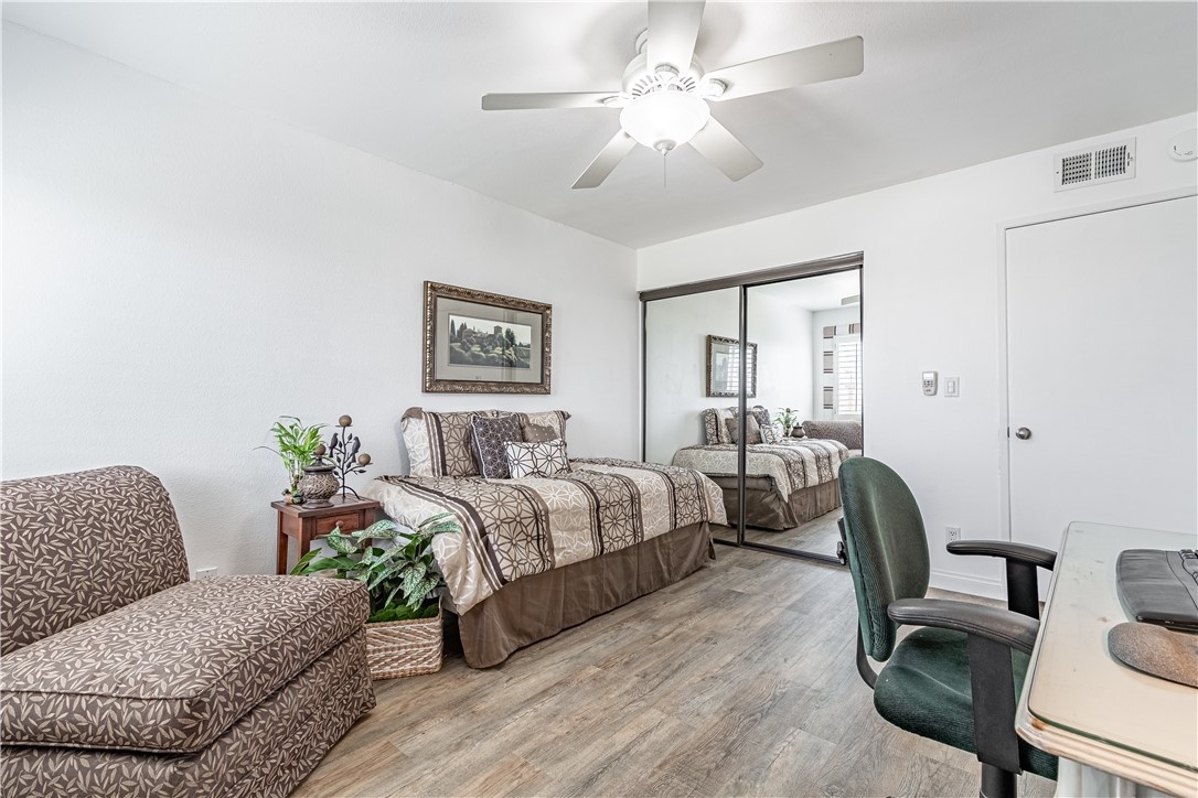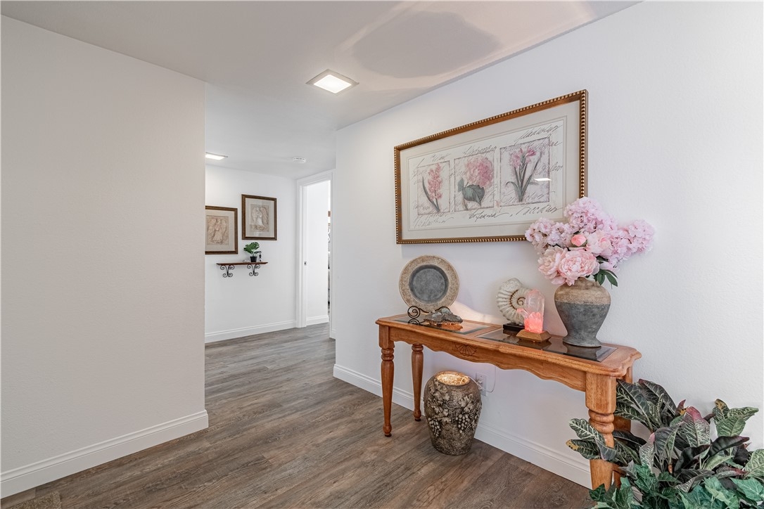 In the delightful little community of Vista del Cerro, this affordable and rare single story condo offers a hillside corner location with a large enjoyable patio. Surrounded by plenty of open space it benefits from ocean breezes and incredible city light, mountain and sunset views. Pride of ownership is evident in this stunning and well maintained home by the original owner. Starting with a secluded covered entry which features a screened door allowing for a cross breeze. Freshly painted, with numerous upgrades, this light & airy floorplan features a dining and living space that opens to a spacious patio with custom colored concrete and heavenly horizon views. Plantation shutters adjust the amount of light and breeze flowing through each room. Other notable upgrades include remote controlled ceiling fans/light fixtures, mirror wardrobes & extra closet shelves. Enjoy the added value of 4½” baseboards, luxury vinyl wood flooring, remodeled baths, refinished tubs/showers, designer lighting and mirrors. Central A/C, forced air heating, a 50 gallon gas water heater and ceiling fans lend themselves to a cost effective, comfortable living space. Convenient space saving interior laundry accommodates a stacked electric washer/dryer. A light & cheerful kitchen loaded with upgrades, stainless steel 3-drawer dishwasher, 5-burner gas stove and French-door refrigerator. Ceramic tile countertops enhance the 2-tone painted cabinetry with brushed nickel hardware. A comfortable master suite offers dual wardrobe closets leading the way to a remodeled master bath with Crème de Marfil marble top, porcelain sink and etched wave tub enclosure. The spacious second bedroom is the perfect size for bed, desk, lounging chair and more! The third bedroom (or hm office) overlooks the front courtyard where it enjoys views of some of the most beautiful full moons. The remodeled second bath showcases a 35” tall rich wood vanity, midnight blue granite top and deep porcelain sink. Home includes one covered carport conveniently located in front of building with additional open parking throughout the community. Vista del Cerro is a small community of only 60 units on 2 small interior streets making it a very private and cozy community and features a refreshing pool, spa and clubhouse.