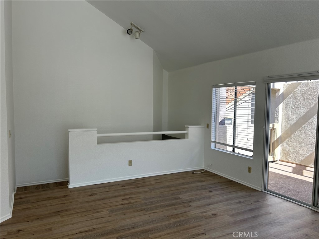 GORGEOUS FIRST HOME OR DOWNSIZE HOME! New wide-plank vinyl floors sweep through the space, perfectly anchoring this light, bright home with stunning cathedral ceilings, all freshly painted and ready to move in. Beautiful open floorplan features a separate dining space and generous living area that wrap around the perfectly sized kitchen. You can catch up with guests while you cook, or take the moment outside to your lovely large balcony - perfect for entertaining or relaxing. If the nights are chilly, cozy up near your fireplace or watch a movie. A generous principal bedroom with a large walk-in closet - complete with organizers - has its own balcony, and is a sweet spot for morning coffee. The bathroom features pretty wainscoting and a shower/tub, perfect for you and your visitors. With your own laundry, and a direct access garage, this home is complete, private and welcoming. A wall of storage cabinets in the garage make living easy too, plenty of space for those Costco runs! Perfectly located on the upper level of The Palms @ Laguna Heights, it is minutes to the world famous Dana Point for shopping, dining, and beach days. A beautiful association pool/spa, Sport court, walking trails, pocket parks and a tot lot make this a highly desirable community. It's good to be home!