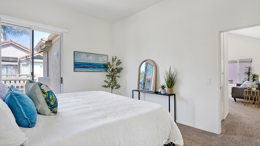 2-Bed, 2-Bath Condo in Laguna Niguel’s Sought-After Palm Court Community. Discover coastal living in this beautifully maintained upper carriage unit featuring vaulted ceilings, abundant natural light, and a cozy fireplace. The open floor plan seamlessly connects the living room, dining nook, and kitchen, creating a bright and inviting space that flows to a private outdoor patio—perfect for morning coffee or evening relaxation. Enjoy two spacious bedrooms positioned on opposite sides of the home for added privacy. The guest bathroom offers a walk-in shower, while the primary suite features a shower-tub combo and its own private patio retreat. Additional highlights include central A/C, track lighting, in unit stackable laundry and a one-car attached garage with storage. Residents of Palm Court enjoy resort-style amenities including a sparkling pool, spa, and ample guest parking. Located just off Golden Lantern, you’re minutes from Laguna Niguel’s shops, dining, hiking trails, and only a short drive or bike ride to the beach—embracing the very best of Orange County living.