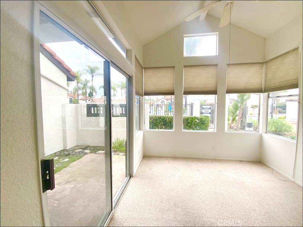 COASTAL LIVING WITHIN REACH – SINGLE-LEVEL SANCTUARY NEAR STRAND BEACH. Discover the ultimate blend of comfort and coastal convenience in this rarely available, single-level ground floor unit, perfectly situated less than six miles from the pristine sands of Strand Beach and the Dana Point Harbor. Boasting over 930 square feet of thoughtfully designed living space, this home offers the highly sought-after accessibility of no stairs and the luxury of a direct-access garage. Step inside to an airy, open floor plan where the kitchen flows seamlessly into the living areas, anchored by a cozy dual-sided fireplace that warms both the dining space, living room and the expansive sunroom, featuring soaring sloped ceilings that flood the home with natural light—perfect for a home office, creative studio, or relaxation haven. Outside, enjoy the best of Southern California weather with both a covered patio for shaded dining and an open patio for soaking up the sun. With an inside laundry closet, steps-away access to the community pool, spa, and tennis courts, and world-class beaches just a short drive away, this is more than a home; it’s the lifestyle you’ve been waiting for.