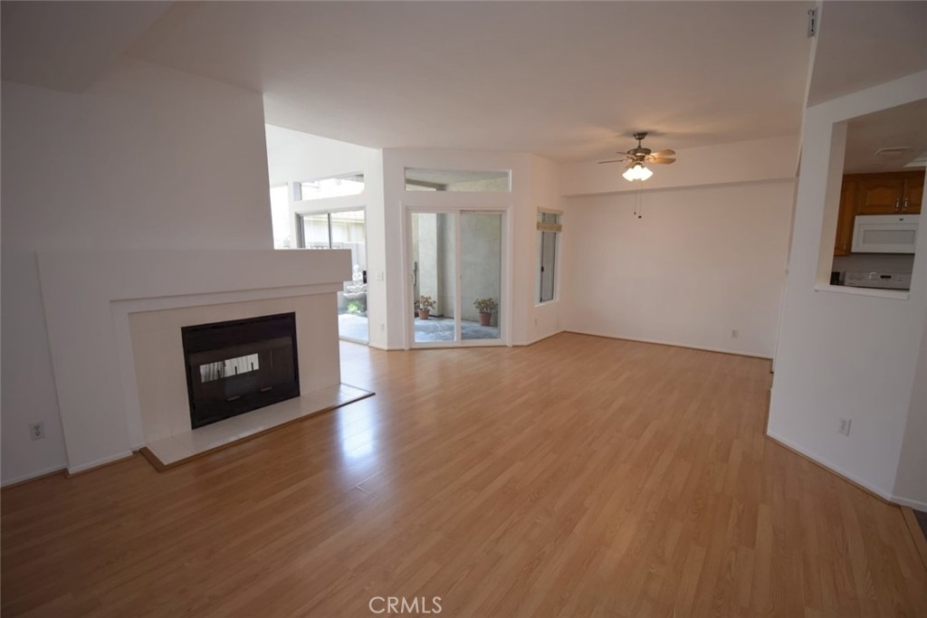 NO STEPS to this Large Single-Story, One-Bedroom-Plus unit in the highly desirable community of Palm Court. This freshly painted open floor plan offers a large living room - which flows to both a separate dining area and an adjoining sunroom. The sunroom shares a double-sided fireplace with the living room and has large windows, cathedral ceilings, and a sliding glass door offering private access to the enclosed patio. The multi-use sunroom can be used as a den/office/bedroom/nursery. Large windows and a sliding glass door create a light and bright area with tranquil views to the private woodsy area behind the home. Light and bright master bedroom with walk-in closet. Open kitchen with granite counters and self-closing cabinets. Attached direct access to one car garage – with ample parking for additional cars nearby. Inside laundry. Palm Court offers two pools, two spas, two tennis courts, a playground, and paved walking trails. Walking distance to George White Elementary, Chapparosa Park, entertainment, shopping and restaurants.