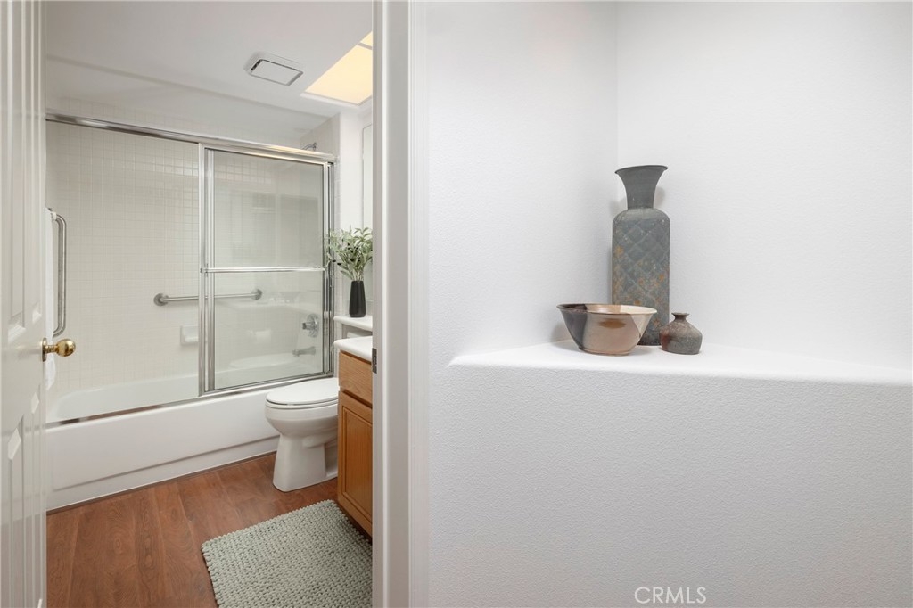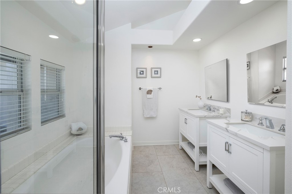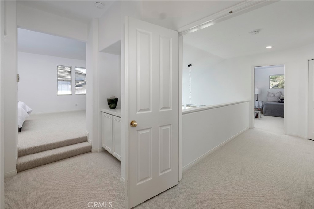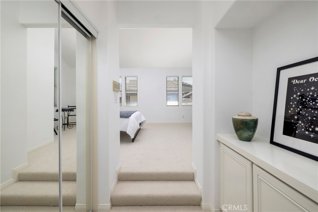 Stunning 3-bedroom, 3-bathroom Townhome offering 1,900 sq.ft of living space located within the gated enclave of Cameray Pointe - in the Community of Bear Brand. This beautiful residence has been thoughtfully updated throughout featuring 2 story ceilings framed by floor to ceiling windows in the dining room with a contemporary lighting fixture. Discover versatile options: - office or game room - with the desirable downstairs bedroom with French doors leading to the private back patio complete with a custom wood screen door. The kitchen has a breakfast area and bar with a newer stainless steel dishwasher and LG refrigerator. The living room has a cozy fireplace with a French door that opens to the patio and surrounding greenbelt - adding an extra level of privacy - secluded in the back corner of the cul-de-sac. Upstairs offers two bedrooms with an open landing/hallway. - providing convenience with the laundry area/closet upstairs. The Primary suite is a show stopper with a double door entrance, large mirrored walk-in closet and a separate linen closet. The bedroom suite has high ceilings and plenty of light and windows - even a peek-a-boo ocean view on a clear day. The newly remodeled en-suite bathroom has dual separate vanities with stone countertops, contemporary mirrors, a separate walk-in shower and soaking tub. Marble style waterproof vinyl flooring and a new Toto toilet. The secondary en-suite bedroom and bath have been refreshed with new paint, carpet and Marble style vinyl flooring. Additional highlights include a 2-car attached garage, cul-de-sac location with guest parking and close proximity to the pool and spa. Minutes to Ocean Ranch Shopping Center and a short distance to world class beaches, resorts and Dana Point Harbor.
