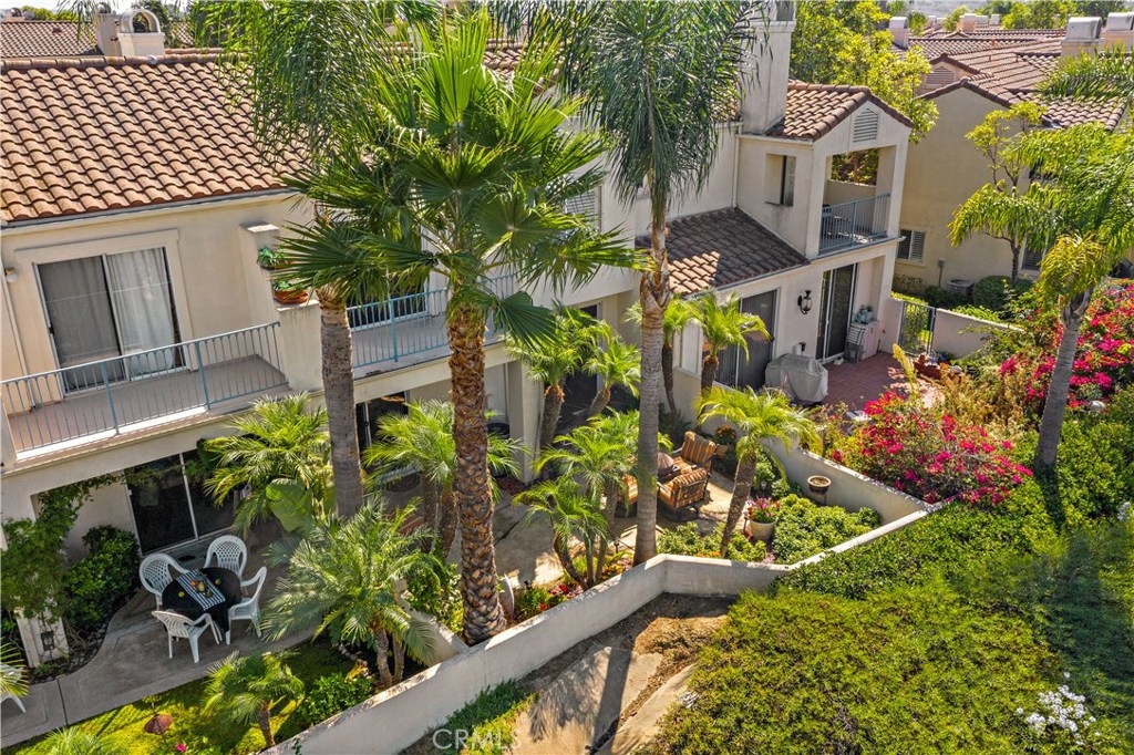 Gorgeous panoramic views of hills and valley from the backyard, bedrooms and balcony! This highly upgraded 2-story condo is located in the beautiful Encore community in Marina Hills and has 2 bedrooms, 2.5 baths, 2 car garage with direct access. Featuring hardwood flooring throughout, crown molding, fireplace with floor to ceiling stacked travertine accent wall, plantation shutters, lovely window shades, wrought iron stair railing, recessed lighting, new wood floors and toilets in the bathrooms. The kitchen is designed for a chef with stunning high end granite counters, custom ivory cabinets and knobs, Sub Zero refrigerator, Dacor oven and warming oven, Wolf range, Bosch dishwasher, stainless steel deep sink, reverse osmosis water filter. On the 2nd floor, the primary bedroom features vaulted ceiling, mirror door closet, a balcony that has breathtaking views and a private bath with 2 sinks and bath tub/shower combination. The secondary bedroom is also very open with vaulted ceiling and a private bath. Laundry room located on the main floor connecting to the garage. HOA amenities include community pool, spa, BBQ, picnic area, playground, tennis court, bocce ball court, clubhouse, biking, hiking trails and much more! Close to shopping, dining, schools, harbor and beach!