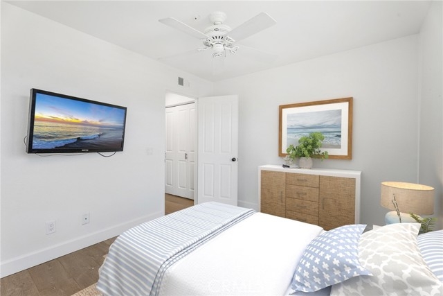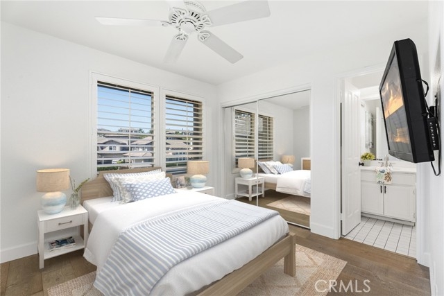 This two-bedroom, two-and-a-half-bathroom townhome located in the gated community of Cameray Pointe in Bear Brand Ranch boasts light-filled interiors with high ceilings, creating an airy and open feel throughout. As you enter the home you are welcomed with soaring ceilings and high windows introducing ample natural light while preserving privacy and maximizing usable wall space. The living area features built-in shelving, a cozy fireplace and French door leading to the back. Stepping outside, the large enclosed patio offers additional living space, perfect for outdoor relaxation or entertaining. The engineered wood flooring lend a contemporary aesthetic, complemented by new paint throughout. The kitchen features marble countertops, breakfast nook and pantry plus a large window overlooking the lovely hardscaped patio with custom pavers and a gate access to the community. The primary bedroom suite includes an en-suite bathroom and a spacious walk-in closet, as well as a cozy fireplace, providing a private retreat. The second bedroom also features an en-suite bathroom, ensuring privacy and convenience. Centrally located between bedrooms you will find an upstairs full-size laundry closet for added convenience. Cameray Pointe townhomes have access to the community's amenities, including a pool and spa, offering a refreshing respite on warm days. The gated community and private setting provide a serene and secure living environment. All of this and located within walking distance to Ocean Ranch Shopping center with fine and casual dining, a gym, Trader Joe's, Cinépolis and much more!