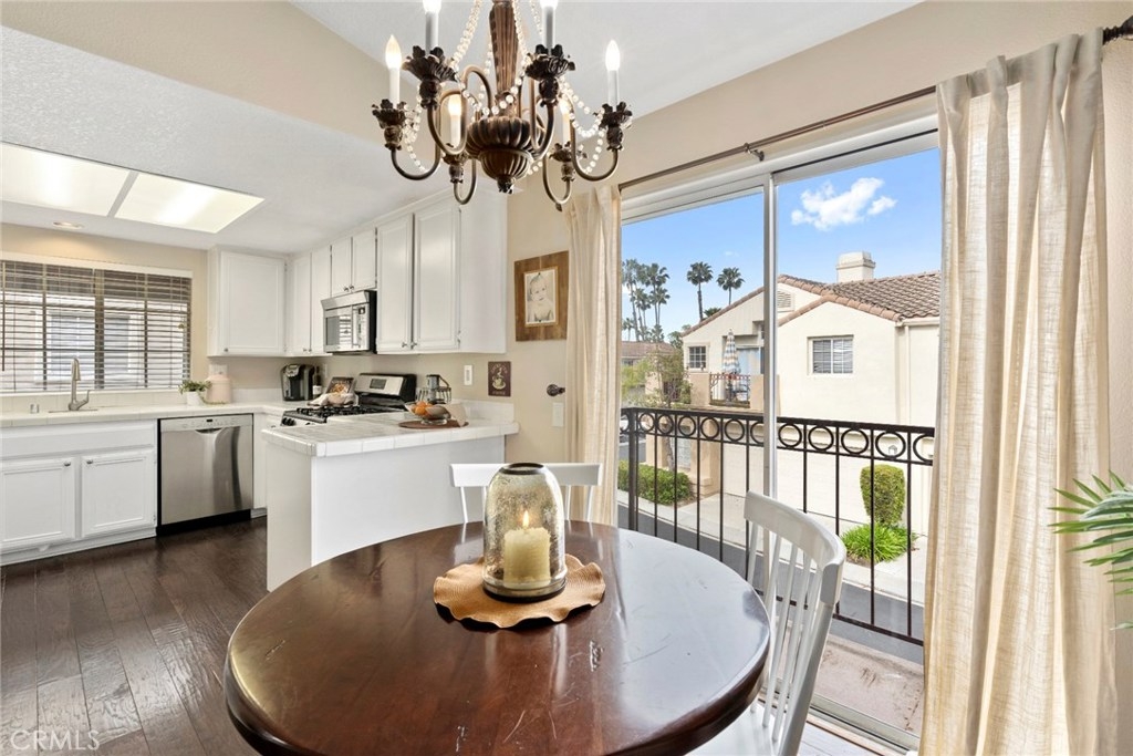 END UNIT, PRIVATE INTERIOR LOCATION, OPEN FLOOR PLAN, LIGHT AND BRIGHT INTERIOR, NEUTRAL COLORS, RE-PIPED WITH PEX, NO NEIGHBORS ABOVE OR BELOW...THIS HOME HAS IT ALL! Featuring 2 bedrooms and 2 full baths, a desirable floor plan with one large great room living area, high ceilings, new skylights, private balconies, new interior paint, custom matte fireplace, raised baseboards and distressed, wide planked, hardwood style floors. Private walking path to front door entrance with a serene hillside setting, an ideal location in the Chandon community. Kitchen with stainless steel appliances including new Bosch dishwasher, kitchen window sink, new faucet, lots of counter top and cabinet space and across from the dining area with balcony. Multiple sliding doors with lots of natural light. Master bedroom with vaulted ceilings and ceiling fan. Master with its own private bath. Both bedrooms with closet organizers. Secondary bath with walk-in shower. 2 car attached garage with built in shelving, workbench and newer water heater. Close to community greenbelt and grass area, near additional guest parking and a short walk to the Chandon community pool and spa. Access to Marina Hills resort style amenities including Olympic size pool and spa, tennis courts, tot lots, sports courts, clubhouse and beach hiking trails. Low HOA and low tax rate. Walking distance to shopping and dining. A short drive to world famous beaches and all the coast has to offer! The perfect beach close home!