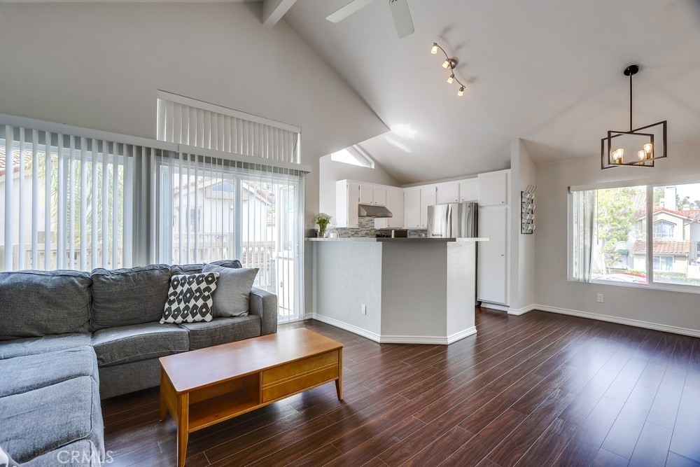 Welcome to the highly desirable community of Palm Court in the heart of Laguna Niguel! This 2 Bedroom / 2 Bathroom condo features a gorgeous updated kitchen, updated flooring throughout, and an open floor plan. Enjoy the luxury of a gas fireplace, an attached single car garage with epoxy flooring, and two decks for outdoor enjoyment. The Palm Court community features pools, spas, tennis courts and is walking distance to Chapparosa Park. Enjoy the convenience of being centrally located to beaches, shopping, dining, freeways and hiking trails.