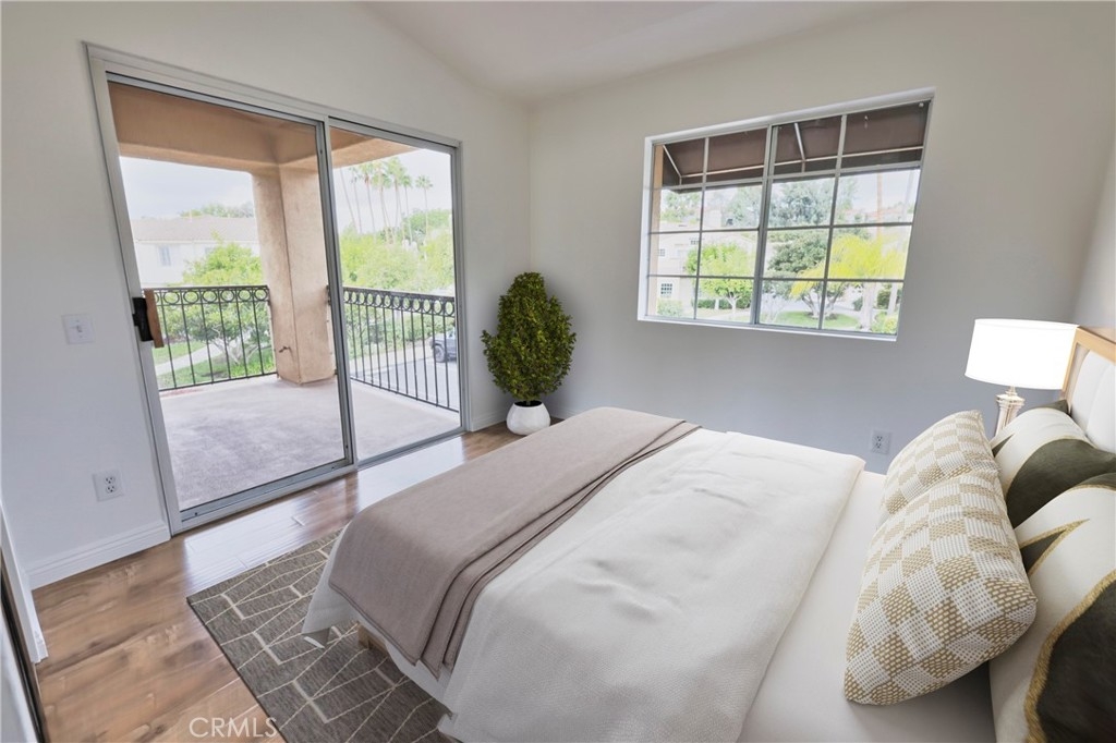 Step into this beautifully updated, freshly painted end-unit that exudes a sense of privacy and tranquility. Welcome to a haven where no living spaces reside below, offering a unique level of privacy. The only attached wall is discreetly nestled within the primary bedroom closet, ensuring a serene living experience. This meticulously maintained residence boasts laminate flooring with travertine in the kitchen and baths, enhancing its allure and ease of maintenance. Enjoy the seamless flow and airy ambiance extending onto two spacious balconies, perfect for savoring outdoor moments. Both bedrooms and dining space are open to the balconies. Convenience meets abundance with ample parking outside the residence and an oversized two-car garage steps away from the entry walkway. The Chandon complex offers more than just a home; it presents a lifestyle. Enjoy exclusive access to its pool and spa, along with the added amenities of Marina Hills, including pools, tennis courts, a clubhouse, and more, all conveniently nearby. Key Features: Two bedrooms -both with brand new mirrored wardrobe doors. The primary bath includes stackable laundry The second bath has a brand-new glass tub enclosure Updated and freshly painted interiors, granite counters, stainless appliances Laminate flooring throughout Private end-unit with no living spaces below Two spacious balconies for outdoor enjoyment Ample parking and an oversized two-car garage nearby Access to Chandon complex pool and spa, plus Marina Hills amenities Embrace the serenity and convenience this end-unit offers. Schedule your private tour today and experience the tranquility and abundance of this remarkable property.