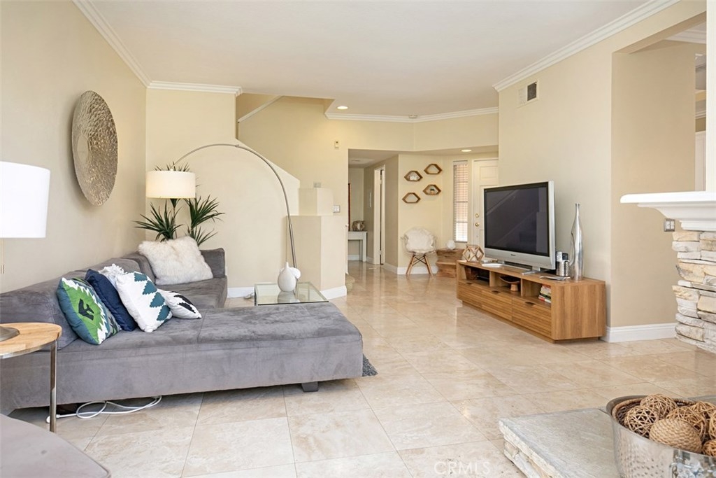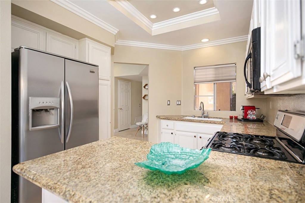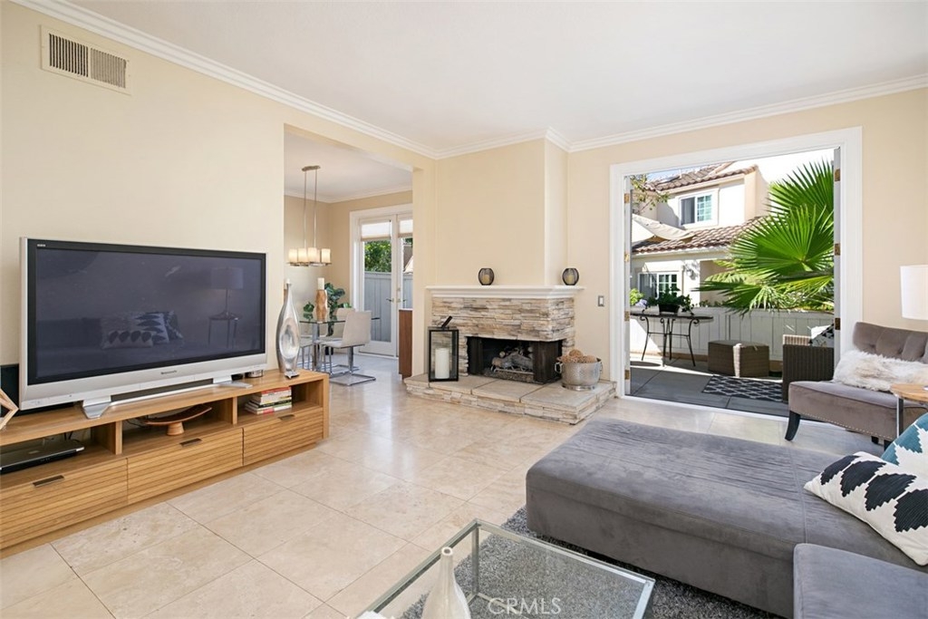 Experience quintessential coastal living in this elegant and spacious condo in the prime Chandon Community of Marina Hills. This light, bright and inviting condo boasts two ensuite, spacious bedrooms, high ceilings, travertine tile floors, crown molding and baseboards, romantic stack stone fireplace, expansive french doors allowing indoor outdoor space. A spacious porch with beautiful foliage ready to welcome guests and outdoor dining. The complete and suited kitchen is perfect for entertaining guests and hosting events features granite countertops, white shaker cabinets and stainless steel appliances and an adjacent dining area. Indulge in pure relaxation in the master bathroom with a large soaking tub, dual sink, travertine flooring and high ceilings. This elegant floor plan with a privately gated courtyard entry, rarely available in the market provides access to the resort style amenities of Chandon and Marina Hills olympic sized swimming pool, tennis courts, club house and barbecue area. Minutes from Dana Point Harbor and beaches, conveniently close to shopping, restaurants, award winning schools and freeways. It is the perfect place to live.