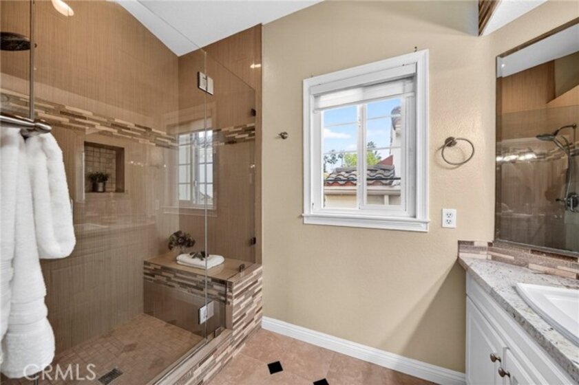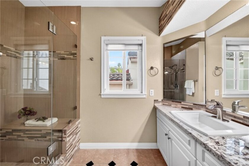 ELEGANCE MEETS EVERYDAY COMFORT! STEP INTO BRIGHT, UPSCALE COASTAL LIVING AT 17 CHANDON. LOCATED IN THE HIGHLY DESIRABLE MARINA HILLS COMMUNITY OF LAGUNA NIGUEL, THIS BEAUTIFULLY UPDATED HOME FEELS OPEN, LIGHT, AND WELCOMING FROM THE MOMENT YOU ENTER. A PRIVATE COURTYARD ENTRY LEADS TO A SUN-FILLED LIVING SPACE WITH LED RECESSED LIGHTING, CUSTOM TILE FLOORS, CROWN MOLDING, AND DUAL-PANE WINDOWS AND SLIDING DOORS THROUGHOUT. THE INVITING LIVING ROOM FEATURES A CUSTOM GAS FIREPLACE WITH A MARBLE SURROUND AND OPENS TO A SPACIOUS GARDEN PATIO WITH LUSH LANDSCAPING AND MOTION-SENSOR LIGHTING, PERFECT FOR RELAXING OR ENTERTAINING. THE UPDATED KITCHEN OFFERS RICH CABINETRY, MARBLE/QUARTZ COUNTERTOPS, A LARGE FARMHOUSE SINK, CUSTOM TILE BACKSPLASH, UNDER-CABINET LIGHTING, STAINLESS STEEL APPLIANCES, AND A BREAKFAST BAR, ALONG WITH A FULL-SIZE LAUNDRY ROOM WITH DIRECT GARAGE ACCESS AND EXTRA STORAGE. UPSTAIRS, BOTH BEDROOMS FEATURE EN-SUITE BATHROOMS AND WALK-IN CLOSETS. BATHROOMS ARE TASTEFULLY UPDATED WITH CUSTOM TILE, MOSAIC DETAILS, SQUARE SINKS, MODERN FIXTURES, MARBLE VANITIES, AND ITALIAN-IMPORT LIGHTING. ADDITIONAL FEATURES INCLUDE PLANTATION SHUTTERS, CUSTOM SHADES, CEILING FANS, MIRRORED WARDROBE DOORS, CUSTOM CLOSET ORGANIZERS, BUILT-IN GARAGE CABINETS WITH WORKBENCH, NEWER GARAGE DOOR OPENER, PREVIOUSLY DONE WHOLE-HOUSE REPIPE, AND A WATER HEATER ONLY ONE YEAR OLD. ENJOY RESORT-STYLE AMENITIES INCLUDING A POOL, SPA AND JACUZZI, TENNIS COURTS, AND CLUBHOUSE, PLUS FULL ACCESS TO THE MARINA HILLS SWIM & RACQUET CLUB WITH AN OLYMPIC-SIZE POOL, PARKS, SPORTS COURTS, AND SCENIC WALKING AND BIKING TRAILS. WALK TO STARBUCKS, SHOPPING, AND DINING, AND JUST MINUTES TO LAGUNA’S BEAUTIFUL BEACHES.