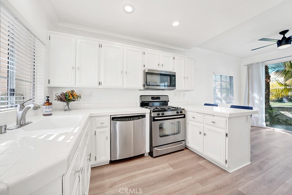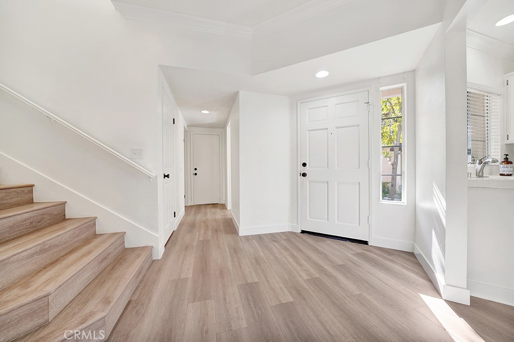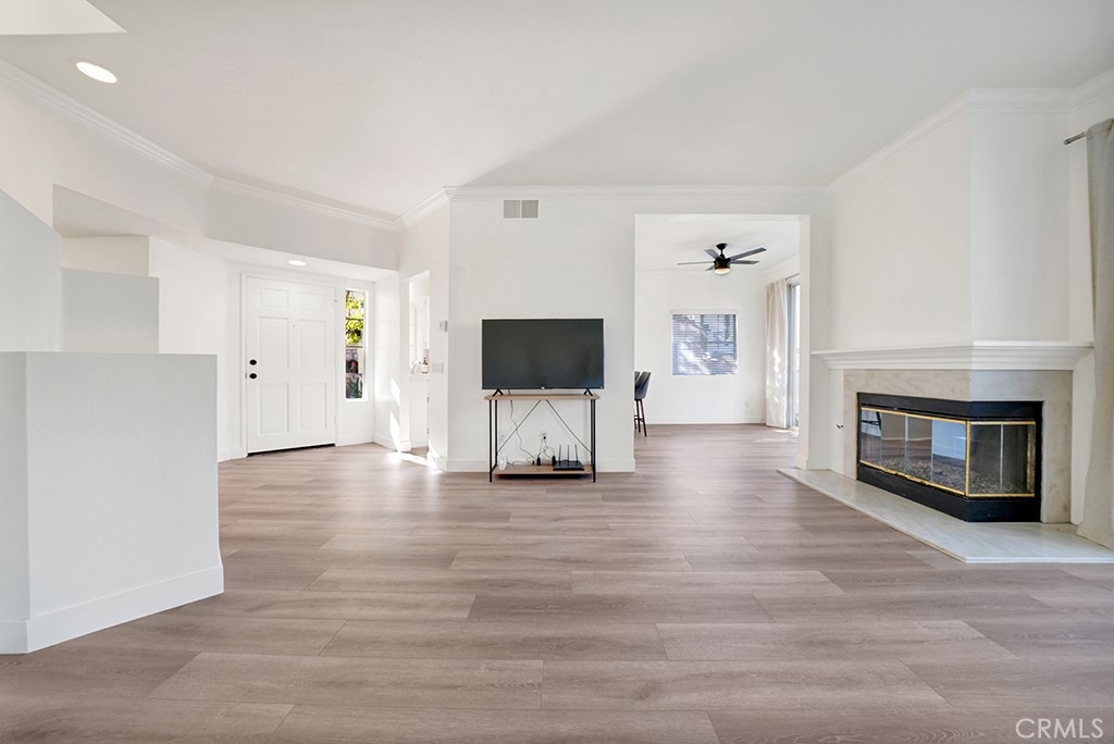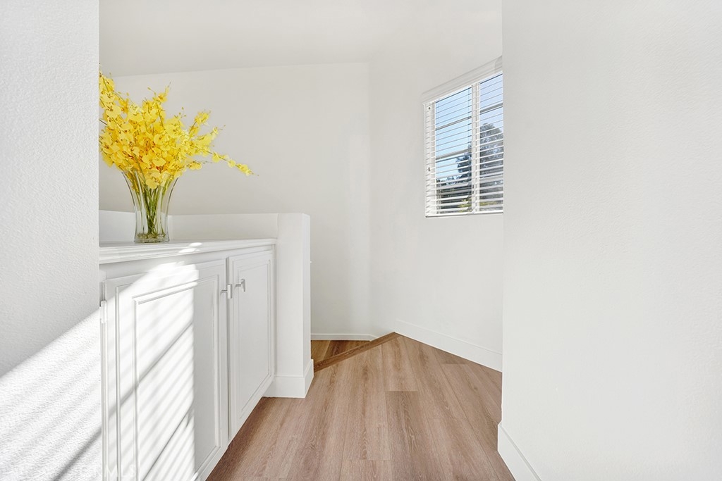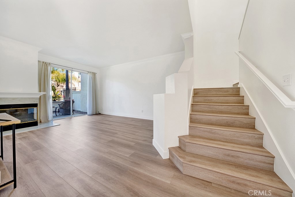 Fully turnkey attached 2 Bedroom home located on a corner lot in the prestigious Marina Hills Community. A spacious living room with a fireplace greets you upon entering the property! The kitchen includes stainless steel appliances, new ceiling fan, and a peninsula that opens the space for entertaining and dining! Upgrades feature: brand new water resistant laminating flooring, eco ultra quiet premium acoustical underlayment installed under all flooring, white paint, baseboards, new Mohawk carpet in upstairs bedrooms and new interior/exterior matte black door knobs and hinges. Downstairs guest bathroom includes new mirrors, faucet and light. Two car attached garage includes new Epoxy flooring, garage Lift Master remote and entry pad! Upstairs includes two en-suite bedrooms. The primary bath has large walk-in shower and dual sinks with granite countertops. Private patio looks out to the luscious greenbelt. Community amenities include 2 pools with spa (one is a junior olympic pool), park, tennis/basketball/pickleball courts, and a clubhouse. Access nearby Salt Creek beach trail that leads you to world famous beaches and resorts! Located less than 5 miles from beaches enjoy everything Laguna Niguel has to offer from hiking trails, parks, restaurants, shopping, and in district for Blue Ribbon Schools!