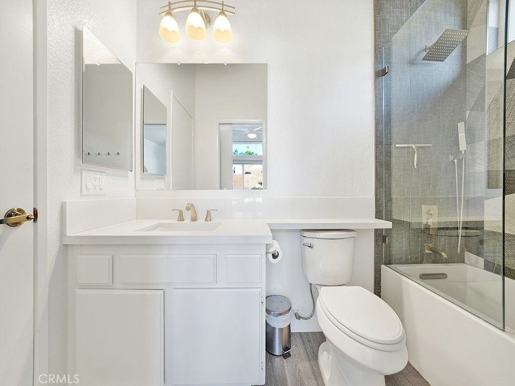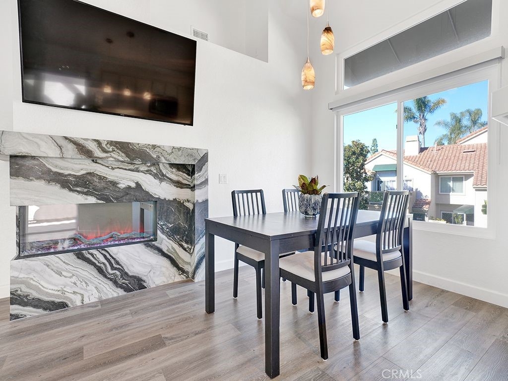 This beautifully remodeled 1 bedroom, 1 bath home is perfect for a buyer searching for an ideal location in South Orange County just a short distance from the beach, Dana Point Harbor, shopping, dining, and entertainment. Within the last few years, the unit has been completed remodeled with a stunning bathroom upgrade, countertops, backsplash, sink, and faucet, a brand new HVAC system including new duct work, custom blinds and light fixtures, flooring, feature ceiling fan in the living area, paint, plus a newer water heater and appliances. The open and spacious floor plan boasts high ceilings, a light and bright living space, cozy fireplace ( just remodeled with a firebox)and convenient inside laundry with a stackable washer and dryer.The large balcony off the living room is perfect for barbecues and entertaining while the second balcony off the master bedroom give you light as you wake up.The upper unit has direct garage access with new storage and there is nobody above or below. You will find yourself tucked away in a private area within the community with beautifully landscaped hillside views. The community was recently upgraded with PEX plumbing and is undergoing a landscaping renovation. As if this isn’t enough to call 2 Daytona your new home, there’s two pools, a spa, and tennis courts to enjoy while being located near some of Orange County’s best beaches, trails, parks, and schools