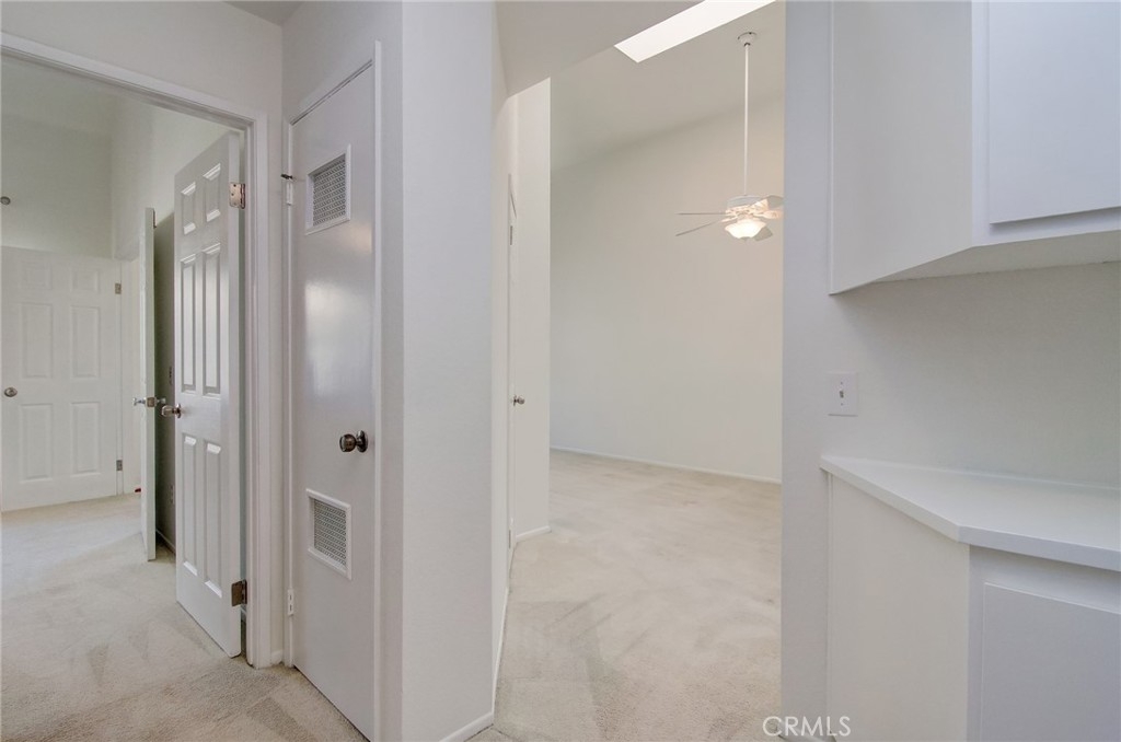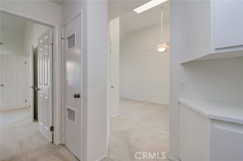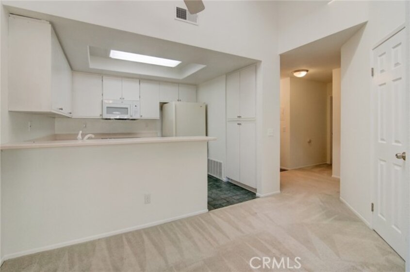 Fantastic purchase opportunity on this upper 2 br 2 ba unit located in the popular "Crystal Cay" community in coastal Laguna Niguel. Fresh interior two tone painting throughout the unit. Bright unit with volume ceilings, living room with fireplace, skylight and vaulted ceilings, dining area with ceiling fan, white kitchen with ample cabinets and counter space, fully vented built-in microwave, refrigerator, pantry, spacious primary bedroom with volume ceilings, mirrored closets and ensuite full bath, nice size second bedroom with vaulted ceilings and mirrored wardrobe doors, full bath in the hallway, forced air heating and central air conditioning, inside laundry closet (stackable washer and dryer included), additional storage closet in the balcony area, assigned carport #853, and community pool & spa. Don't miss out on this beautiful unit!
