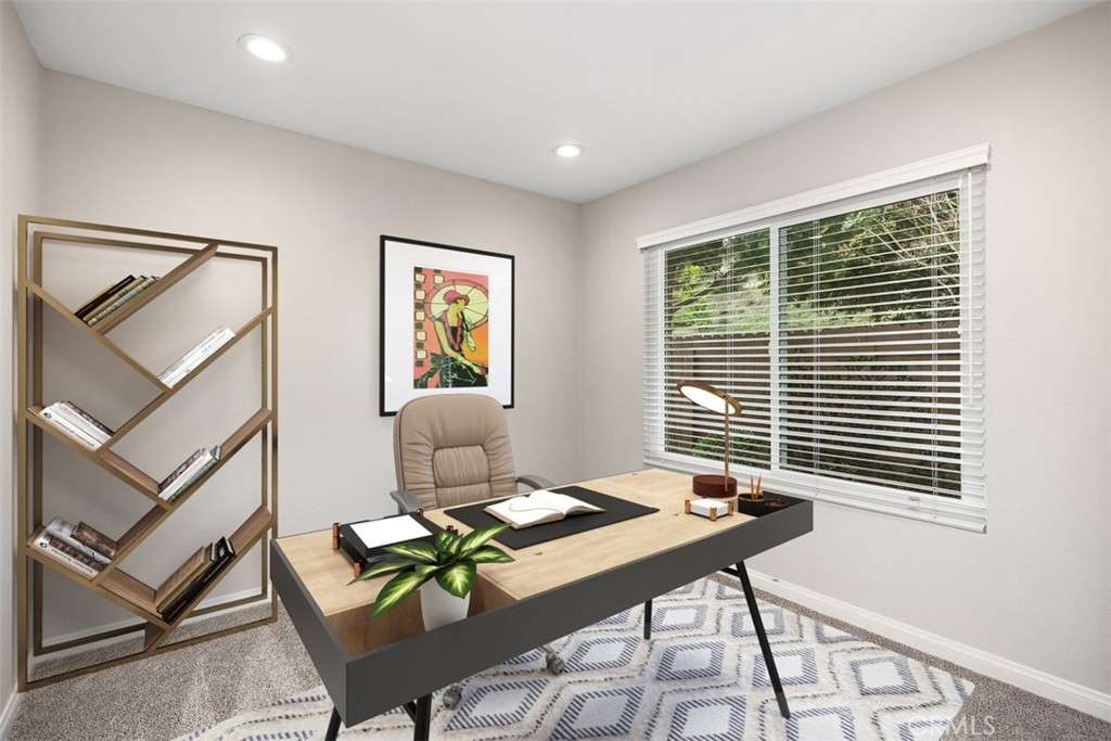 Beach Coastal Breezes! STUNNING Single-Level End Unit, 2 Bedrooms PLUS an Office — A Private Retreat in a Lush, Serene Laguna Niguel Neighborhood! Welcome to this beautifully upgraded and remodeled home, rarely on the market, where gentle beach coastal breezes complement peaceful, resort-style living. Perfectly situated amid pristinely manicured landscaping and mature trees, this exceptional single-level residence offers **two spacious bedrooms large enough to accommodate king-size beds**, plus a **private den with charming new farmhouse doors**—ideal as a home office, private retreat, or optional third bedroom. The vaulted living room ceiling creates an open, airy ambiance filled with natural light and cooling coastal breezes, flowing effortlessly into the dining area. Both spaces open to a private wrap-around patio with lush, green, park-like views that truly bring the outdoors in. A cozy gas fireplace with ceramic logs anchors the living space, making it equally inviting for everyday living and entertaining. The chef’s kitchen is a true showpiece, featuring porcelain tile flooring in the kitchen and hallway, top-of-the-line stainless steel appliances, Cambria quartz countertops, a sleek glass tile backsplash, under-cabinet and recessed lighting, new cabinet hardware, and fresh paint. A stunning new dining chandelier adds warmth and elegance. Every detail has been thoughtfully upgraded, including dimmer switches throughout, crystal and chrome door hardware, freshly painted interior doors and trim, all-new dual-pane windows and sliding doors, a platinum security screen door, and a SimpliSafe security system with outdoor cameras for added peace of mind. The secondary bedroom features mirrored wardrobe doors, Washer and Dryer included. Outdoor living truly shines with an oversized wrap-around patio, perfect for entertaining, relaxing, children, and pets. Enjoy professionally installed pavers, a tranquil fountain, stylish new entry and planter lighting on dimmers and timers, white rock accents, lush plantings, new irrigation with timer, and a new 6-foot stained wood fence with secure front and rear gates, your own private outdoor oasis enhanced by refreshing coastal breezes. Additional highlights include a one-car garage plus an adjacent assigned parking space conveniently located right in front of the home. Turnkey, tranquil, and beautifully upgraded—this coastal-inspired Laguna Niguel retreat truly has everything you need to call it home.**