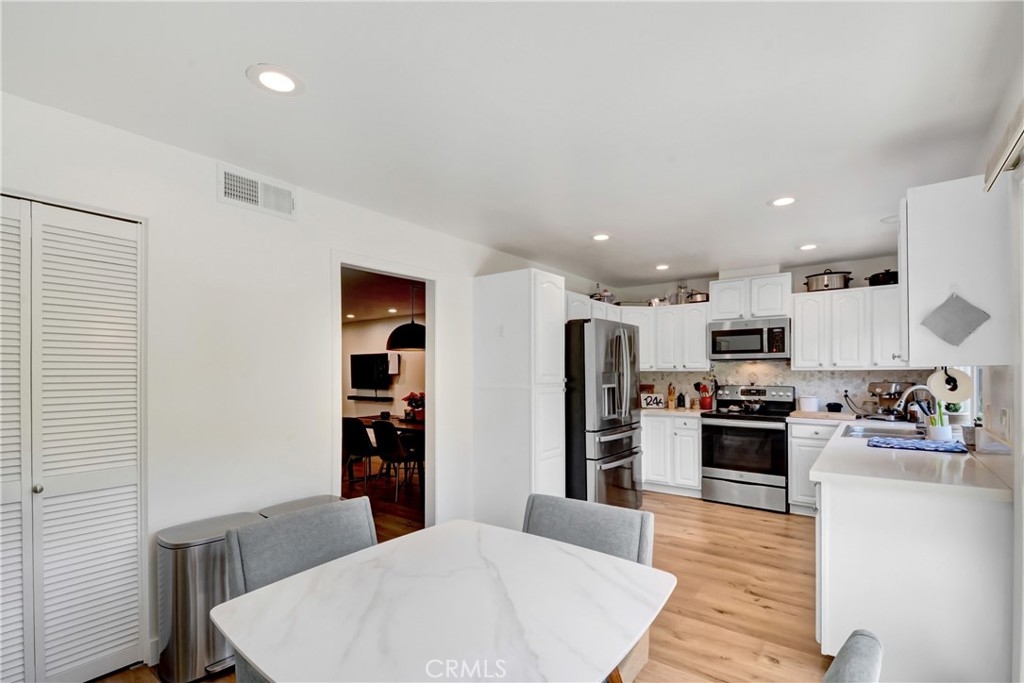 Nestled in a serene greenbelt setting, this beautifully updated townhome offers a peaceful retreat where life can unfold with ease. A gated courtyard entry welcomes you into a spacious living room with a charming stone fireplace and a full-size dining area—perfect for entertaining. The upgraded kitchen boasts modern cabinetry, sleek quartz countertops, and a sunny breakfast nook with sliding doors that open to a private patio overlooking the lush greenbelt. Featuring 3 bedrooms and 2.5 bathrooms, updates include recessed lighting, ceiling fans, plank flooring, recent paint and new front and back fencing and gates. Enjoy the generous primary suite with a retreat area, walk-in closet, and tranquil views. Work from Home? Network cable installed throughout the whole home. Convenient side-by-side laundry, a one-car garage with storage, and an additional assigned parking space. Community amenities include a sparkling pool and relaxing spa. Nature enthusiasts will love the proximity to Aliso and Wood Canyons Wilderness Park, offering miles of hiking, biking, and equestrian trails. Plus, you're just under 5 miles from the stunning Salt Creek Beach and close to premium shopping, dining, and entertainment in every direction.