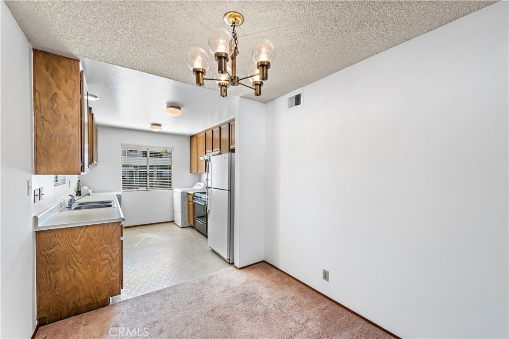 Welcome home to this clean and bright 2-bed 1-bath lower unit in beautiful Niguel Vista! This is an excellent opportunity for a first-time homebuyer, someone looking to downsize, or an investor! You enter the home into a spacious living room which looks out to the tidy backyard through a large sliding door. Directly adjacent to the living room, you will find the dining and kitchen areas. The kitchen has two windows facing the front of the unit, an electric range, vent hood, dishwasher, refrigerator, and a washer and dryer. The rear bedroom has a large window looking out to the backyard, and the front bedroom has a window looking out toward the front of the home. The bathroom has a vanity sink, ample cabinet space for storage, and a walk-in shower with a glass-door enclosure. The backyard is also equipped with a handy utility closet to store your tools, gardening items, etc. The unit was recently cleaned, interior painted, carpet cleaned, and windows washed. The home comes with one assigned covered carport parking spot at the front of the unit, and one unassigned uncovered parking spot. The HOA includes: water, trash, landscaping, pool, spa, and BBQ area. You will find peace of mind knowing that Laguna Niguel has been recently ranked #6 in the "SafeWise" list of the 10 safest cities in California! Here in Niguel Vista, you will be conveniently located just a few miles to the local coastline and beaches, close to great shopping and restaurants, and world-class hiking and mountain biking. Don’t miss your opportunity to call this property YOUR HOME!