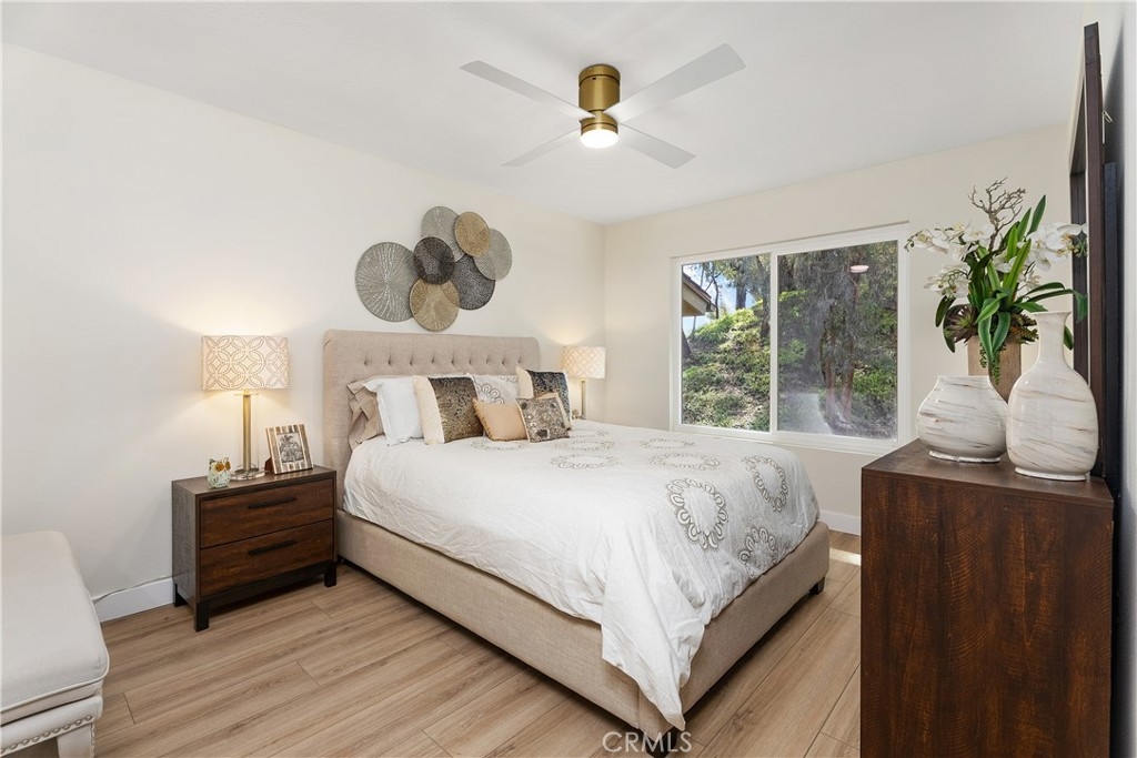 Great location and floor plan in this townhome community located in the heart of Laguna Niguel. Completely remodeled recently, this 4 bedroom home has all new interior paint, all new flooring, new White kitchen with stainless steel appliances, new remodeled bathrooms, new lighting fixtures and all new landscaping, just to mention some of the recent improvements. This townhome has a rare 4 bedroom floor plan with 2 full bathrooms upstairs and a guest bath downstairs. The primary suite has a walk in closet, beautiful bath/shower area and view of the backyard. There is a good size backyard with privacy. One car detached garage behind a private gated entry. Affordable 4 bedroom home in a great community