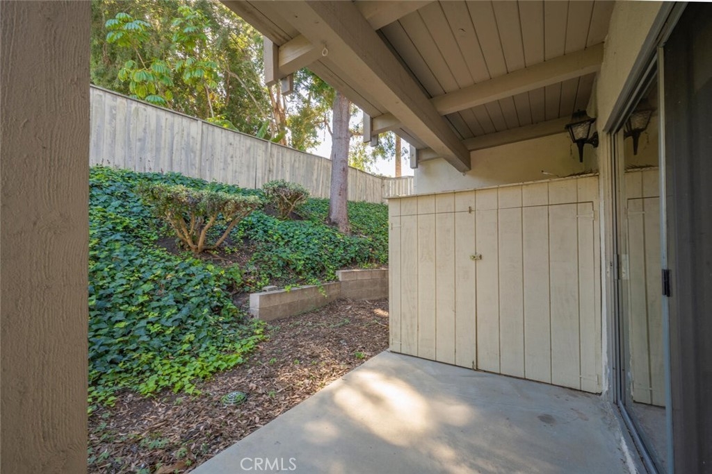 Welcome to this light and bright remodeled home in the desirable Hillhurst community just three miles from the BEST beaches in Southern California. The home is situated in a private area of the complex and backs to a greenbelt with no other homes directly in front or in back! This open concept home boasts new interior paint, new luxury vinyl plank flooring, new carpet and a sliding glass door opening to the private patio with a large storage shed. There is also a secondary patio off the Dining Room which offers an outdoor seating area and provides a cross breeze in this private condo. The remodeled Kitchen includes crisp white cabinetry with soft close features, granite countertops, recessed lighting, pantry and appliances including a stove, dishwasher, microwave and refrigerator. The spacious bedroom includes ample closet space and a neutral paint palette. The attached bathroom has upgraded cabinetry with with a separate toilet and bath area. Enjoy this turn key home that has been thoughtfully updated and cared for and is completed with 1 carport space including lockable overhead storage along with ample guest parking. The community offers a pool, outdoor shower, restrooms, community laundry area, greenbelts and beautifully maintained landscaping. The HOA also covers water, trash and gas! Conveniently located only minutes from Laguna Beach, Dana Point, Laguna Niguel Library, Laguna Niguel Summer Trolley Drop-off and the YMCA. Enjoy living in this community where you can relax in the beautiful home surrounded by award winning schools, shops, restaurants, hiking trails, parks, easy road access and great amenities! DON’T MISS OUT!!