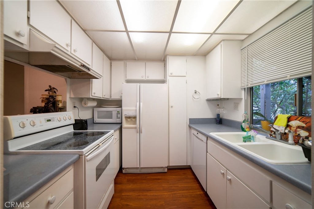 Fantastic location with extra privacy. Two Bedrooms and one bathroom with vaulted ceilings, super private balcony facing the green area. Enter on the 2nd floor, with roomy living room and dining area. Large private balcony off the the dining and kitchen. Hardwood flooring in the living area and plush carpet in the bedroom(s). Ample kitchen cabinet space. Hallway to the extra large bathroom leading to the Primary Bedroom. There are adequate cabinet space and storage in the unit. The second bedroom was converted. The Hillhurst Condos are conveniently located and close to everything including walking distance to shopping, grocery and minutes from the beach.