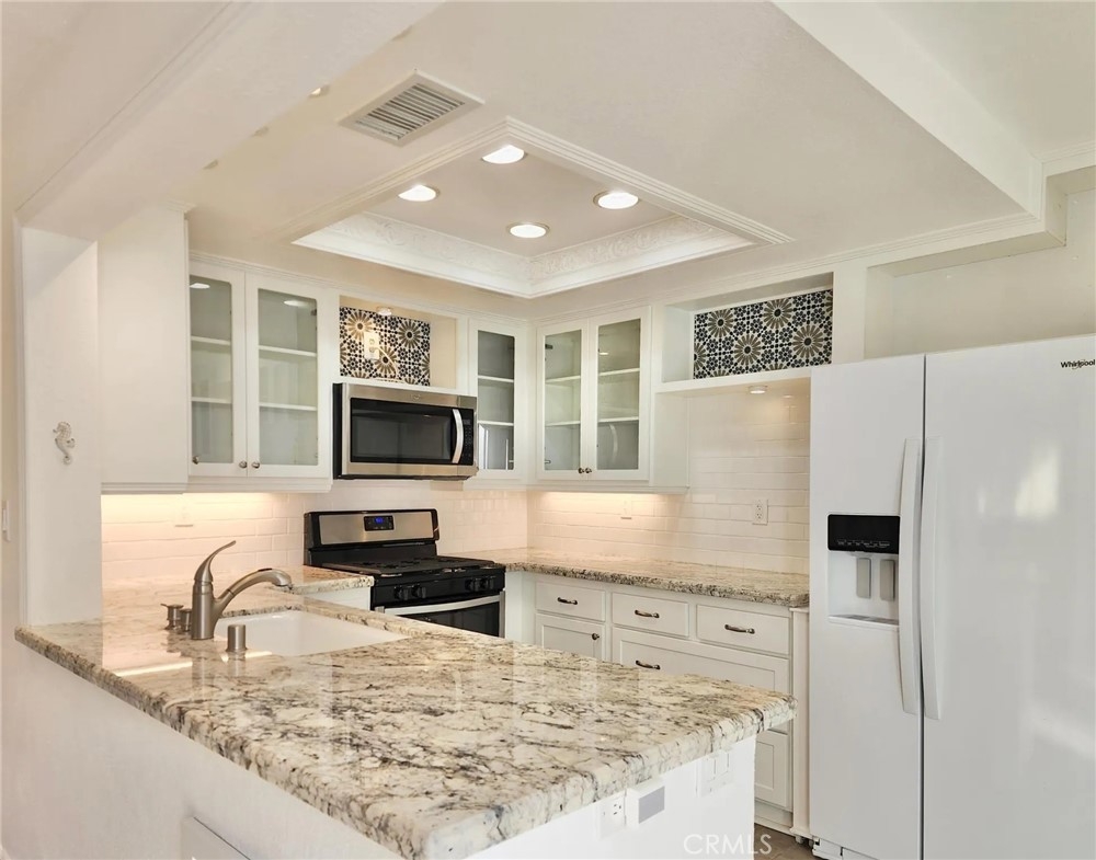 Welcome to the gated community of Village Niguel Terrace! This townhouse-style home boasts 2 bedrooms and 2.5 bathrooms. The lovely, upgraded kitchen is adorned with inviting accents, perfect for inspiring culinary creations. Two spacious master suites, each with its own bathroom, offer both style and comfort. Enjoy two private patio areas ideal for entertaining or relaxation. You will find additional upgrades throughout as well including shaker cabinets, granite counters, natural lighting, decorative modern tiles, new vanity, subway tiles, recessed lighting throughout, and a 1 car-enclosed garage. Community amenities include a resort-like pool, tennis courts, a baseball field, and a dog park. Conveniently located near the 73 toll road and 5 freeway, as well as world-class dining and shopping options.