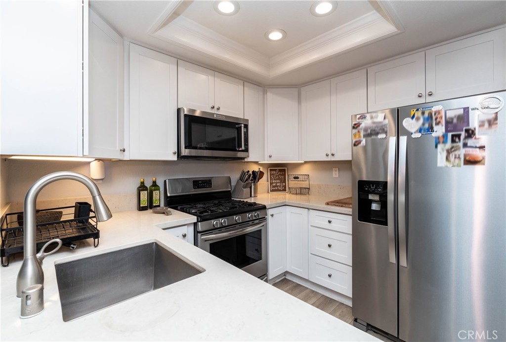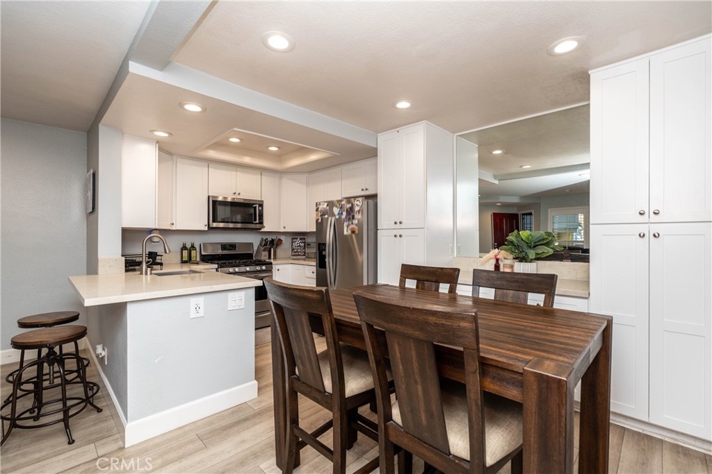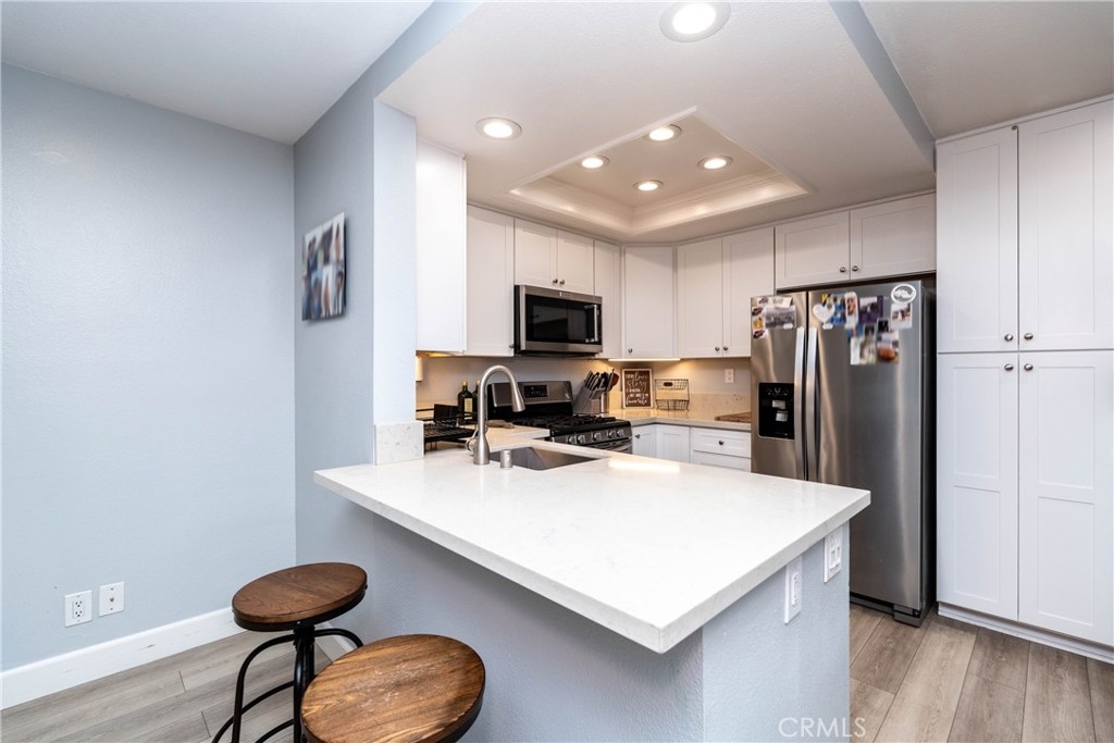 Welcome to the gated community of Village Niguel Terrace! This charming ground-level 1 bedroom 1 bath condo invites you to see this home yourself. As you enter, you’ll be welcomed with crown molding throughout and a spacious open layout which allows you to entertain guest from most areas of the home. As a bonus, you will notice the vast amount of storage space along the dining room area which any homeowner can benefit from. As you walk through the hallway you will be complimented with more closet space and a stackable washer dryer duo that will be staying with the home for you to enjoy. Thankfully a gorgeous full bathroom is complimented with a large bedroom sitting across from one another. Internally, this fits most people who are looking for a great price, open space and great amenities. The answer is yes, this lovely home comes with a garage and many guest parking spaces for your visitors to come embrace your new home. This quiet secured gated community boasts a resort-like pool, tennis courts, private park, and dog park. A highlight of the community is being seconds away from Target, Walmart, Costco, Whole Foods, Sprouts, In-N-Out and amazing restaurants, coffee shops, and a multitude of services, as well as trails, the 73 Toll road, 5 freeway, Close to Soka University and world-famous beaches. Why only read the description when you can come see it yourself? See you soon!