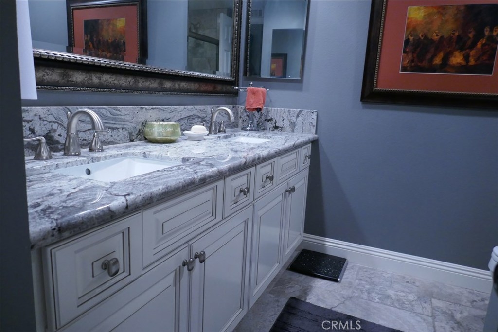 Popular Village Niguel Gardens Condo, no one above or below. Great location within tract, quiet and on a cul-de-sac street. Beautiful, quality remodeling has been done throughout in the last few years (approx 4 years ago). This includes the kitchen and all 3 bathrooms. Kitchen is large with many beautiful self closing cabinets, granite counter tops, pantry and nice lighting. Downstairs has been freshly painted with a light inviting neutral color. The master bathroom with dual sinks was completely remodeled to include a very large shower with bench. (It meets regulation to be a tub as well). The upstairs hall bathroom also has dual sinks and is a beautiful remodel. All bedrooms have mirrored closet doors and ceiling fans. The living room has vaulted ceilings and the fireplace stone is nicely upgraded! The staircase was a complete remodel and something you would expect to find in a custom home. Walk to the nearby park with 2 lighted tennis courts and dog park, part of the association membership. This complex is gated and includes 2 pools. HOA has a limit on properties within this complex that can be rentals. At this time, owner occupied or second home owners only can purchase. HOA dues are low and community is very well managed. Great convenient location to the 73 toll and 5 Freeway. Walking distance to Shopping.