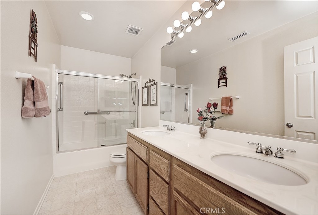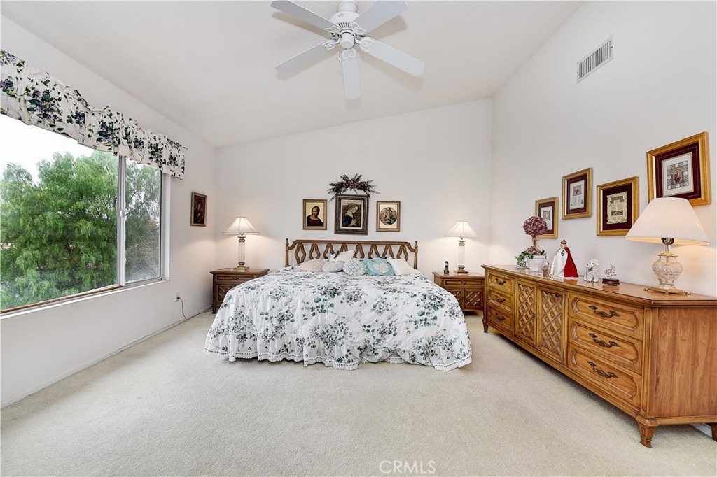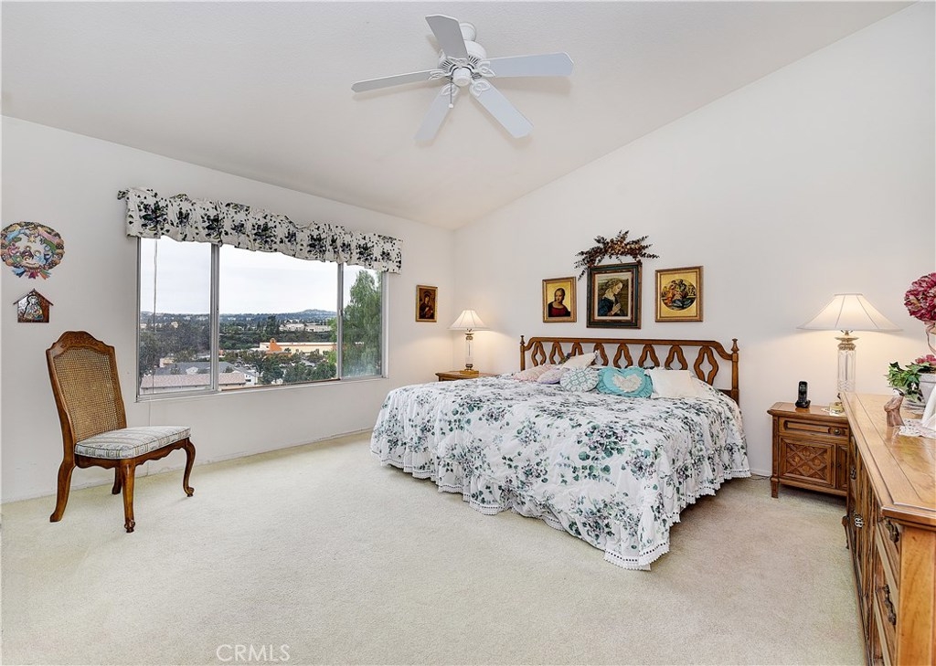 On top of the world with panoramic city lights views. Possibly one of the best location in the tract! End unit location with total privacy. This light & bright home offers 4 bedrooms, 3 baths with 2 car attached garage. One bedroom and bath on the main floor. The main floor bedroom is being used as a family room. Ceiling fans in all bedrooms. Large patio with panoramic views. Gated community. Association offers pool & spa. A beautiful place to call home.