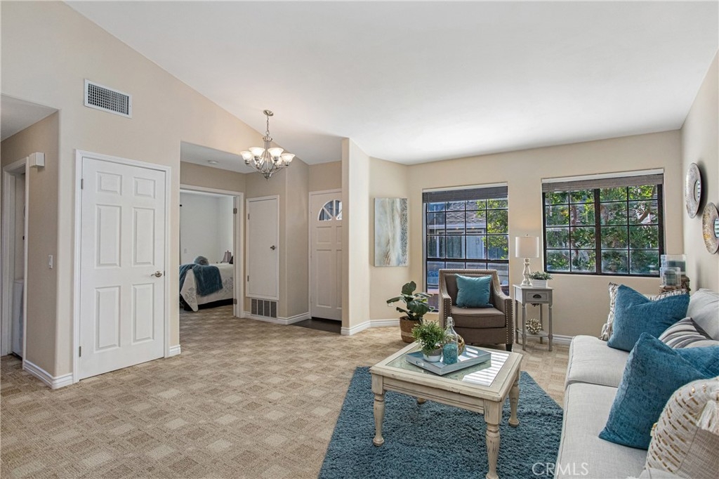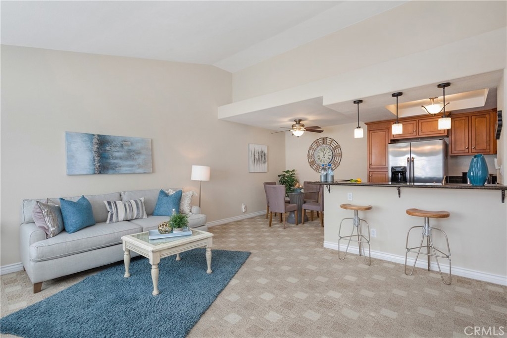 This beautiful upper end unit has an interior location in the sought after gated community of Village Niguel Terrace 1. It has Two spacious bedrooms, one bathroom, open floorplan with vaulted ceilings, Freshly painted with designer high quality carpet flooring. You have two balconies and they are perfect place for BBQ or relaxing on your patio chair while sipping on your favorite drink and enjoying the view. High ceilings and natural lights will make this unit feel more spacious. The open floorplan is ideal for entertainment. Kitchen is updated with high quality cabinetry, beautiful countertops and pendant lights above the raised island. Kitchen also opens to the living and dining room. Your stackable washer and dryer is conveniently located between the master bedroom and the kitchen, tucked away in a closet. Bathroom has access to the hallway and the master bedroom. Living Room windows have new blinds. The unit has been re-piped with Pex so you do not need to worry about pin-hole leaks. The water heater is brand new and has passed the city inspection. The house looks amazing. Did I mention your one car garage, private park, tennis court, pool, spa, and walking distance to all major stores like sprout, home depot, target, Starbucks, Walmart, ... and award wining schools? This is a very well priced home ideal for first time buyers.