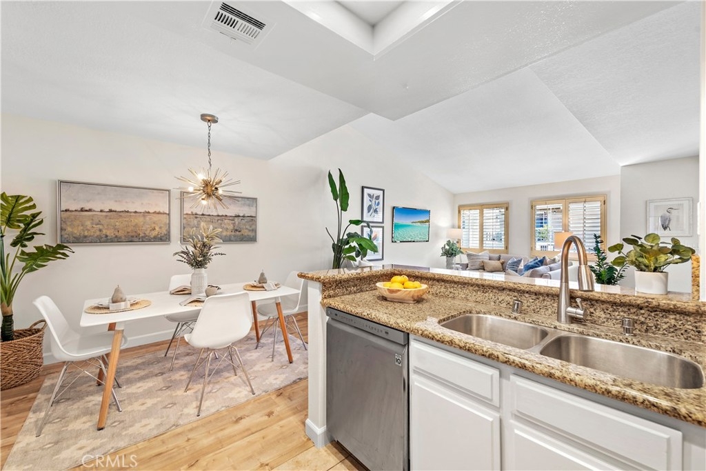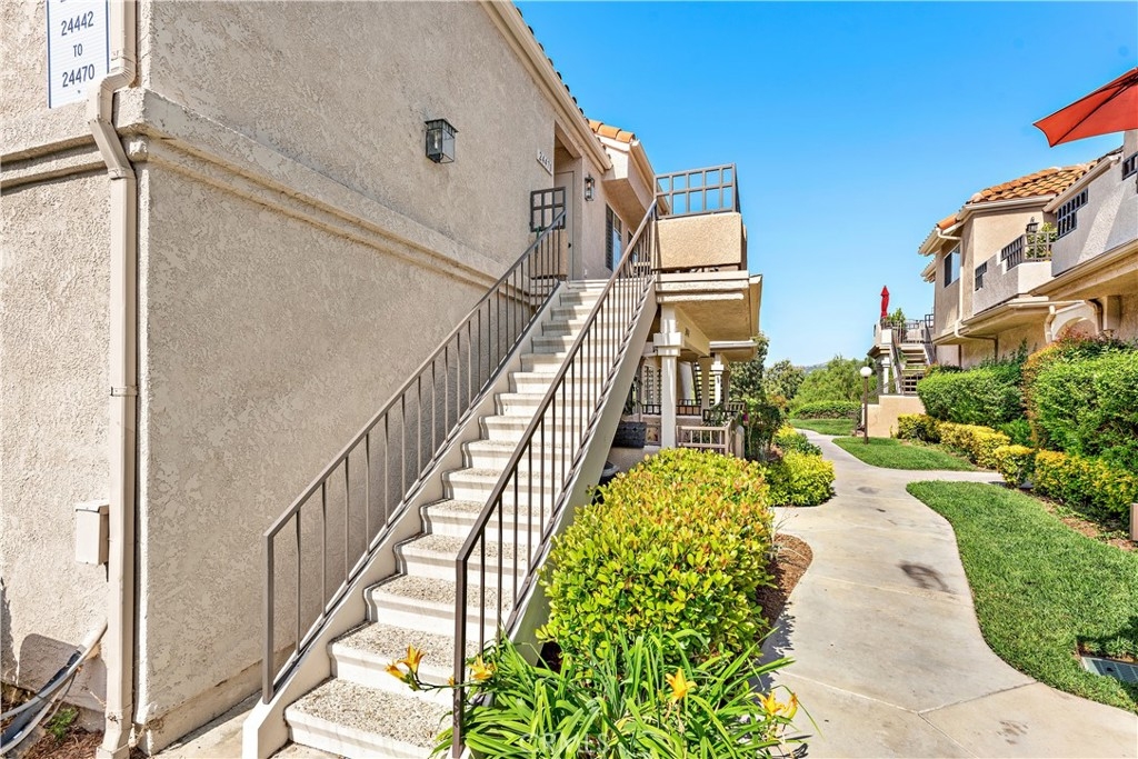 LIGHT, BRIGHT, and SPACIOUS second-floor end unit in the private, gated community of Village Niguel Terrace II. This condominium has 2 bedrooms and 1 bathroom with 956 square feet of living space. The living room features a cathedral ceiling and plantation shutters, and in the kitchen, granite counters and stainless-steel appliances. Throughout the unit you will find newer paint and flooring, large closets, a stackable washer and dryer, and a spacious balcony. A detached 1 car private garage is included. The community boasts of resort-like amenities such as a community pool and spa and Village Niguel Terrace II is also part of the Country Village Master Association, which includes a private spacious park, tennis courts, picnic areas, and baseball/softball field. Last but not least, there are no Mello-Roos! This home is perfect for first-time buyers and empty nesters. Conveniently located near restaurants, shopping, grocery stores, and the freeway. Just a quick drive to some of South OC's local beaches: Dana Point, San Clemente, Laguna Beach, and Monarch Beach.