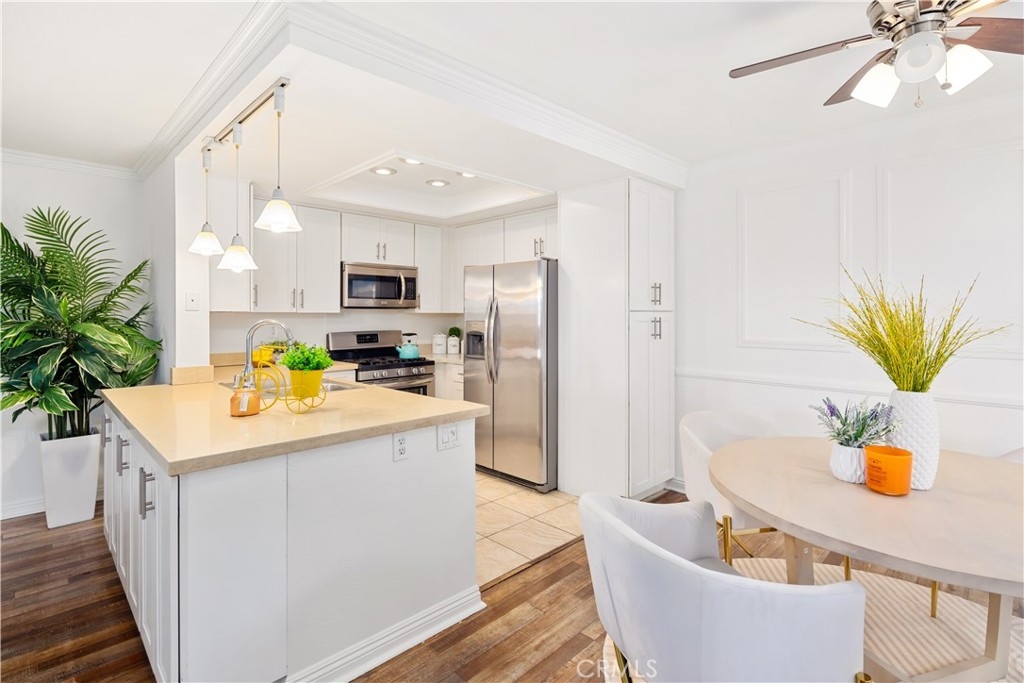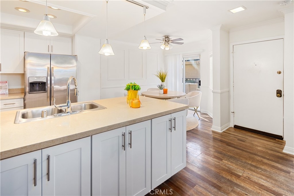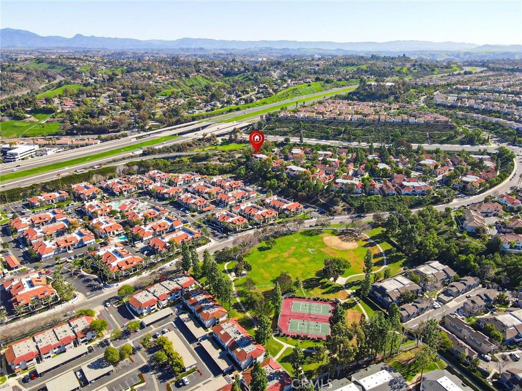 FIRST SHOWING ON Jan 28!!!Lovely updated townhouse available in the resort-like gated community of Village Niguel Terrace. This private end unit features open concept living with quartz countertops, recessed lighting and updated laminate flooring. Half-bath is downstairs, and upstairs features dual master bedrooms with private en suites. Views from the home showcase peaceful views of the trees and the many parks that are located within walking distance. Outside terraces allow for enjoying beautiful southern California sunsets. Home is centrally located to award winning schools, beaches, restaurants and family entertainment. Neighborhood amenities include a sparkling pool, jacuzzi, tennis courts, private park as well as dog park and home features detached one-car garage.