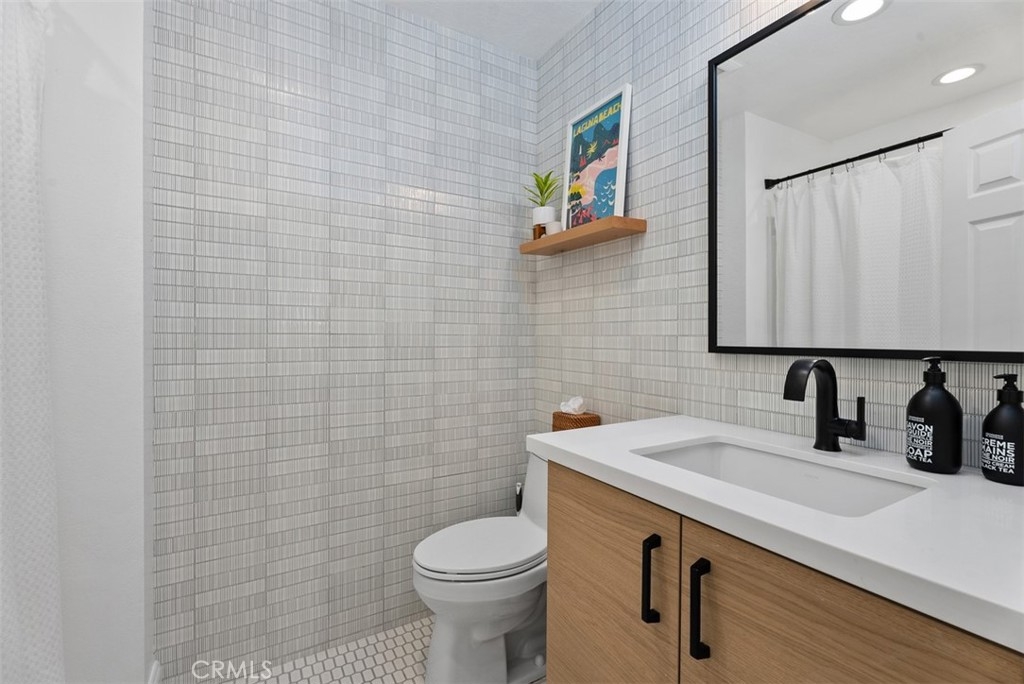 Welcome to this stunning 3 bedroom, 2.5 bathroom residence in the sought after Niguel Pointe community. Completely turnkey, this home has been updated from top to bottom. This home features ceramic tile flooring and LED lighting throughout, creating a bright and modern feel. The kitchen has been refreshed with an updated dishwasher, stove and oven. The primary suite offers a spa-inspired bathroom with custom vanity, floor-to-ceiling designer tile, and a spacious shower with built-in bench. Secondary bathrooms showcase custom vanities, stylish wall and floor tile, and upgraded finishes. Additional updates include a new garage door system and built-in storage. Step outside to your entertainer's dream backyard, fully remodeled with new concrete, turf, and drainage system, plus a custom wood-wrapped concrete bar with seating, built-in gas fire pit, BBQ grill, and beverage fridge perfect for gatherings and entertaining. Enjoy the resort-style amenities of Niguel Pointe including tennis courts, swimming pool, spa, and nearby scenic trails. This move-in-ready home blends indoor luxury and outdoor lifestyle in one of the area's most desirable communities.
