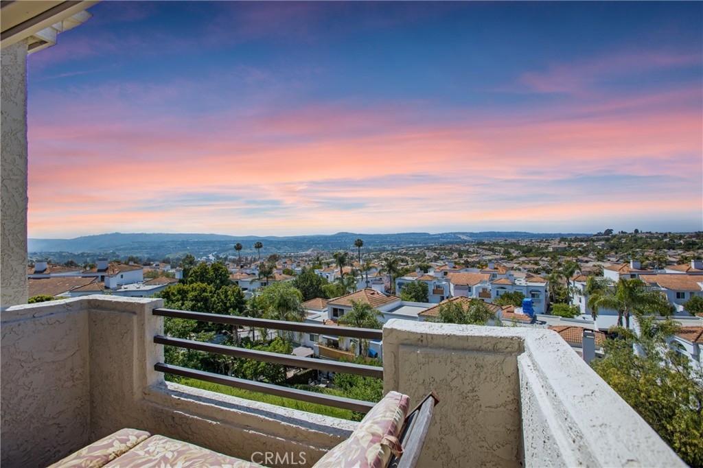 Welcome home to this two-story condo with spectacular views from the downstairs patio and upstairs balcony. These premium location properties are rarely for sale. Enjoy the incredible sunset views and fireworks display in the distance during the celebration of freedom. The interior boasts porcelain tile downstairs with ribbon inlays at the entry and around the fireplace and porcelain tile in the wet areas upstairs. Strand Woven Cherry Bamboo flooring in the hallway, staircase, and both bedrooms. The open kitchen concept has a bar counter with two newer swivel stools for viewing options, stainless steel appliances, and lots of pantry space. The dining area off the kitchen leads to a view patio. Cozy fireplace in the living room. A convenient ½ bathroom is located downstairs with an upgraded vessel sink and granite countertop. A full-size laundry room is between the kitchen and the direct-access garage with an extra quiet door opener and added shelving. Upstairs, the primary bedroom has high vaulted ceilings, a walk-in closet, and a panoramic view balcony. The primary bathroom has new sink faucets and an updated dual vanity. Oval tub in the shower. Remodeled full bathroom in the upstairs hallway with ribbon inlay tiling, updated vanity with granite-style countertop. The secondary bedroom has mirrored wardrobe doors. This Expressions community was re-piped with Pex plumbing material. Low property taxes and association fees, which include water and trash. Relax at this spectacular resort-style community pool and spa, which features a shower, bathroom amenities, and tables under a covered patio. Excellent dining, 4 plaza shopping, and theatres are just a walking distance away. Easy access to the toll road, 5 freeway, and Costco. Great schools and parks, beaches, and walking trails are nearby.