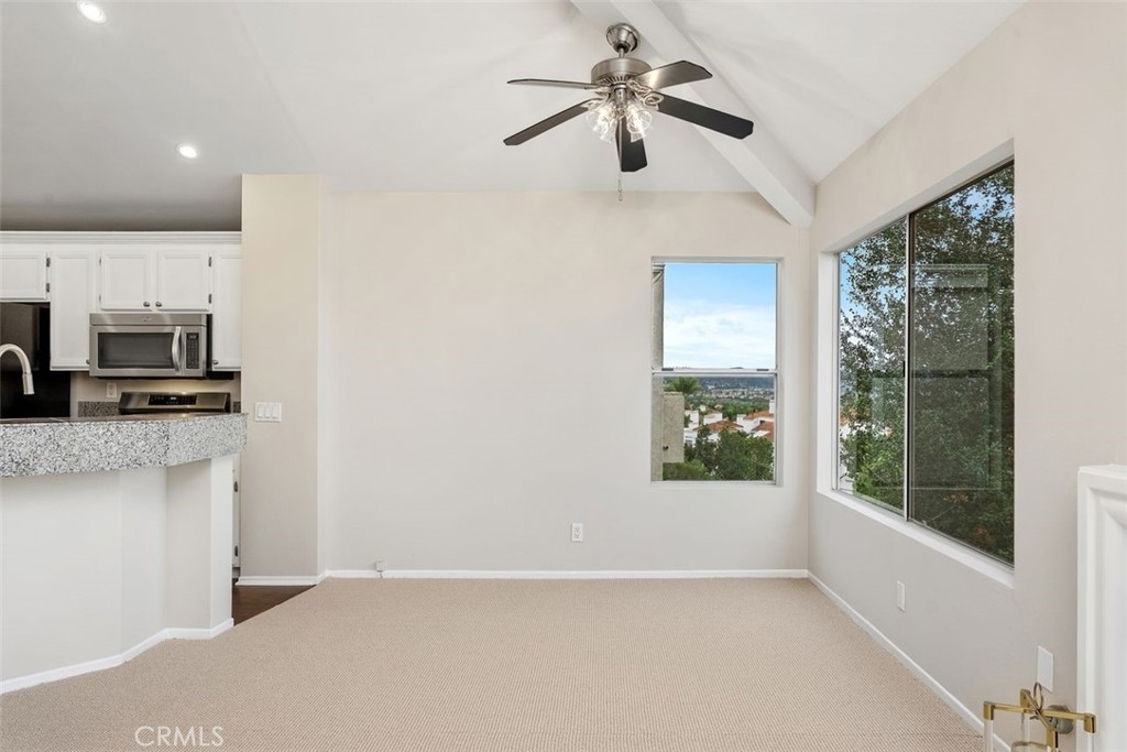 PANORAMIC MOUNTAIN VIEWS!! This turnkey residence in the highly sought-after Expressions community of Laguna Niguel offers a perfect blend of modern comfort and coastal convenience. The home features a bright, open-concept floor plan highlighted by dramatic cathedral-vaulted ceilings and a cozy fireplace that anchors the living area. The updated kitchen, featuring sleek stone countertops and premium stainless steel appliances, flows seamlessly into the dining space, making it ideal for entertaining. Relax in your spacious primary suite complete with a generous walk-in closet and a private balcony that captures serene city and mountain views. Practical upgrades include a direct-access 1-car garage, in-unit laundry with washer/dryer included, and the peace of mind provided by a community that has been recently re-piped. This home also includes ALL APPLIANCES- refrigerator and washer/dryer! Ready to move in. Life in the Expressions neighborhood feels like a year-round vacation, with access to a resort-style pool, spa, and beautifully landscaped grounds. Strategically located near the 73 Toll Road and I-5, this home offers an effortless commute while keeping you minutes away from the shopping and dining at The Shops at Mission Viejo. Outdoor enthusiasts will appreciate the proximity to the trails at Laguna Niguel Regional Park and the world-class beaches of Dana Point Harbor, all while being served by the prestigious Capistrano Unified School District. What else could you ask for?