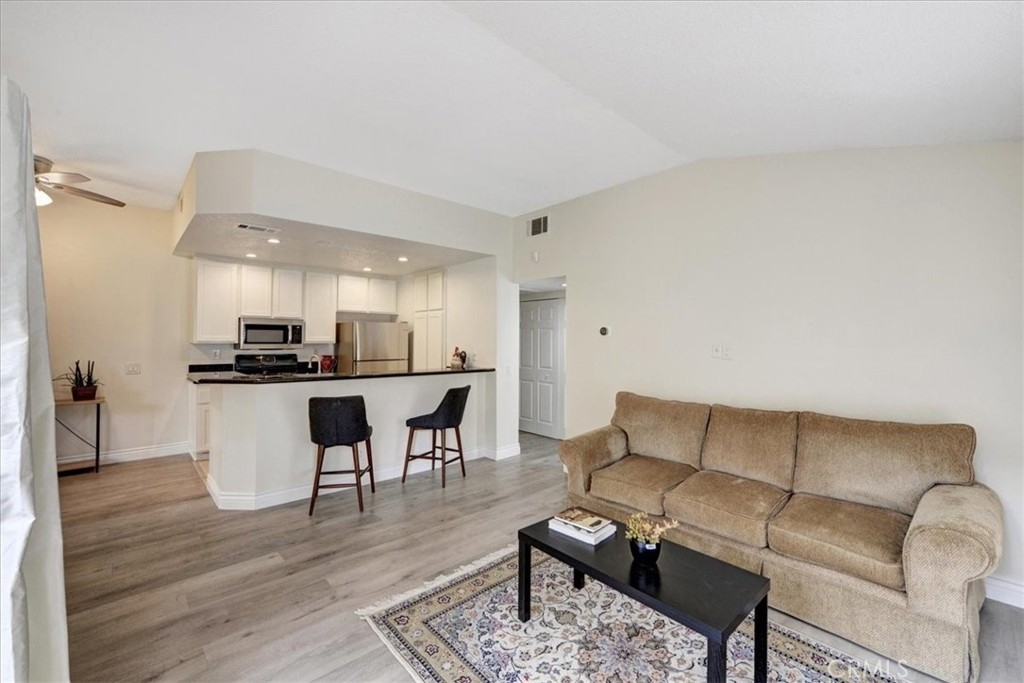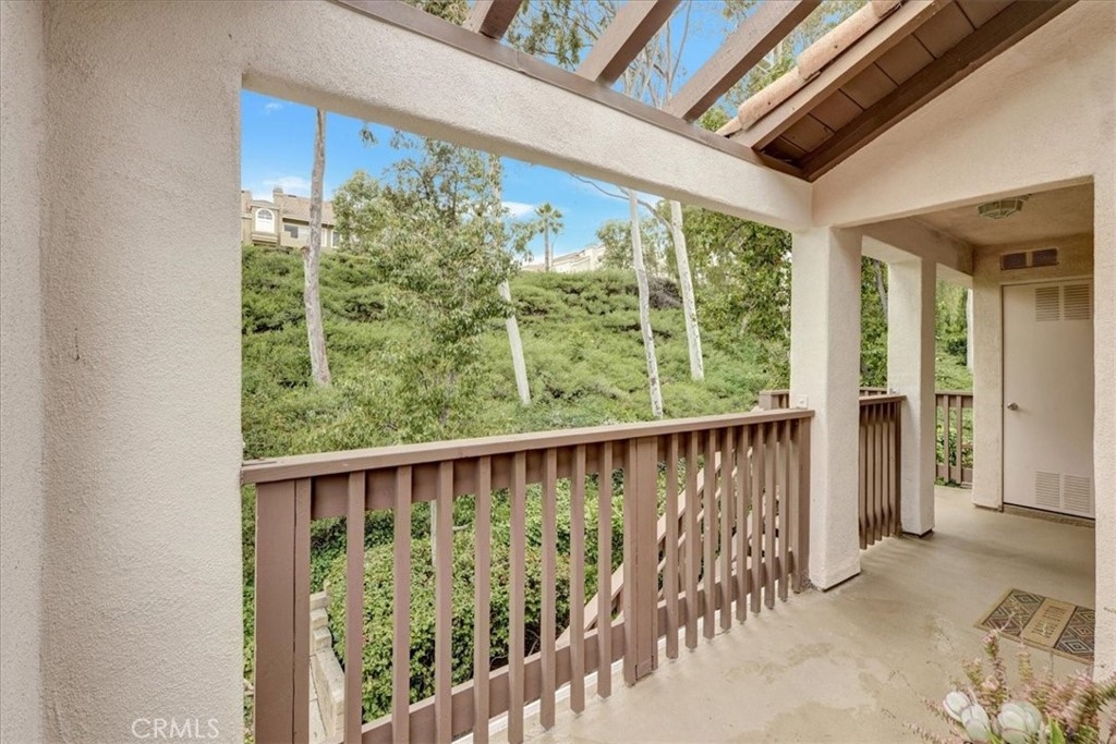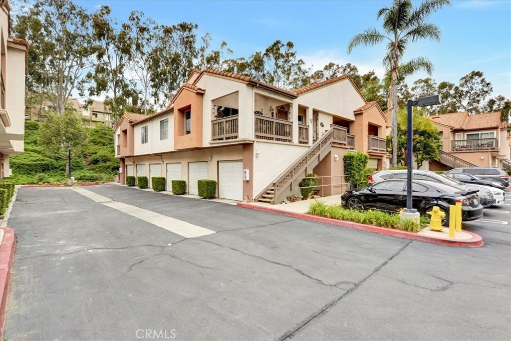 Welcome to this beautiful 1 bedroom, 1 bath, end-unit condo in the Milano community of Laguna Niguel. This upper-unit features a one car garage directly below it and no other units above or below. A spacious front patio, perfect for enjoying Laguna Niguel's coastal climate greets you as you approach the front door. Right outside the unit you will find many trees and lush greenery lending to a peaceful setting. Inside you will find an open living and kitchen space with a sliding door leading to the front patio. In the bedroom you will find a walk in closet and in-unit laundry is conveniently located outside the room. Enjoy the pool/spa, clubhouse and other amenities offered by the Milano community. The property is situated in a prime location with quick access to freeways, amenities, shopping and only a short drive from Orange County’s world class beaches!