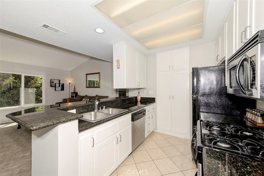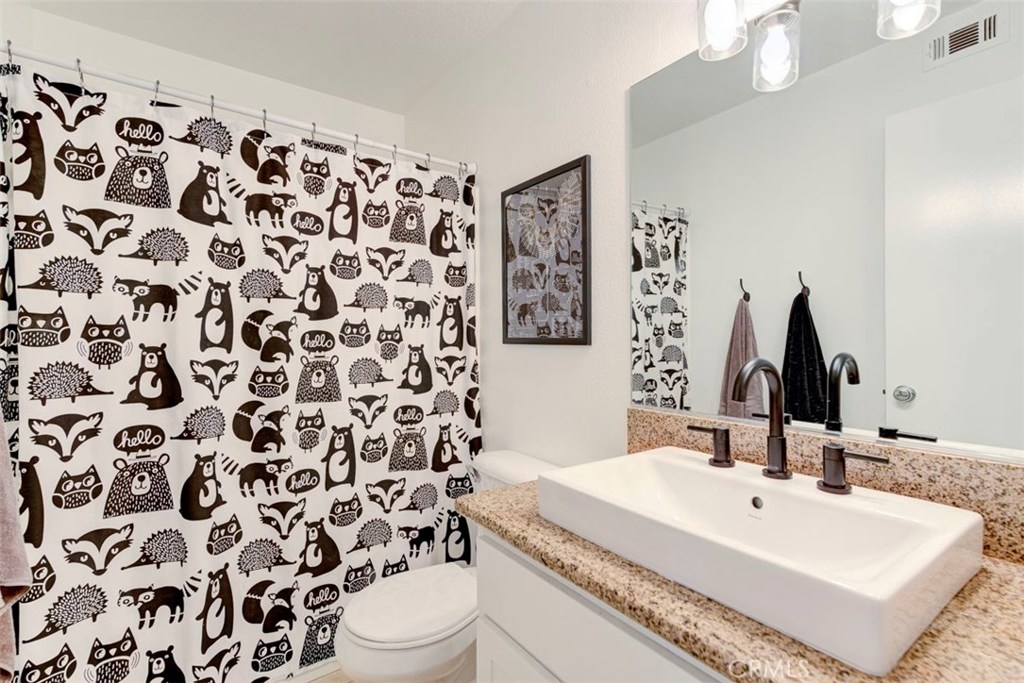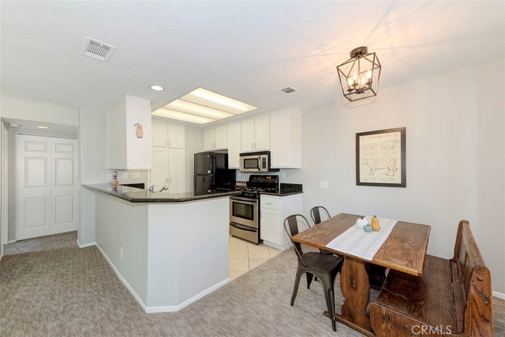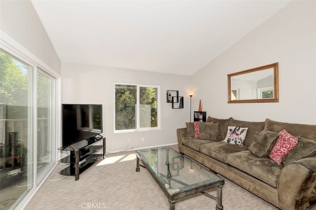 Welcome home! This adorable one bedroom one bathroom condo situated on the second story is ready for you. Kitchen boasts white shaker style cabinets, beautiful quartz countertops and opens to your family room. Newly installed carpet runs throughout the living area with newly painted walls. The family room has a vaulted ceiling and opens to a fantastic patio. All the windows have been upgraded with Milgard double pane windows. Laundry is conveniently located with full size washer and dryer in the hall. The bedroom is spacious and has a walk-in closet. One car garage with high ceilings and lots of space for storage. You don’t want to miss the opportunity to own this great condo!