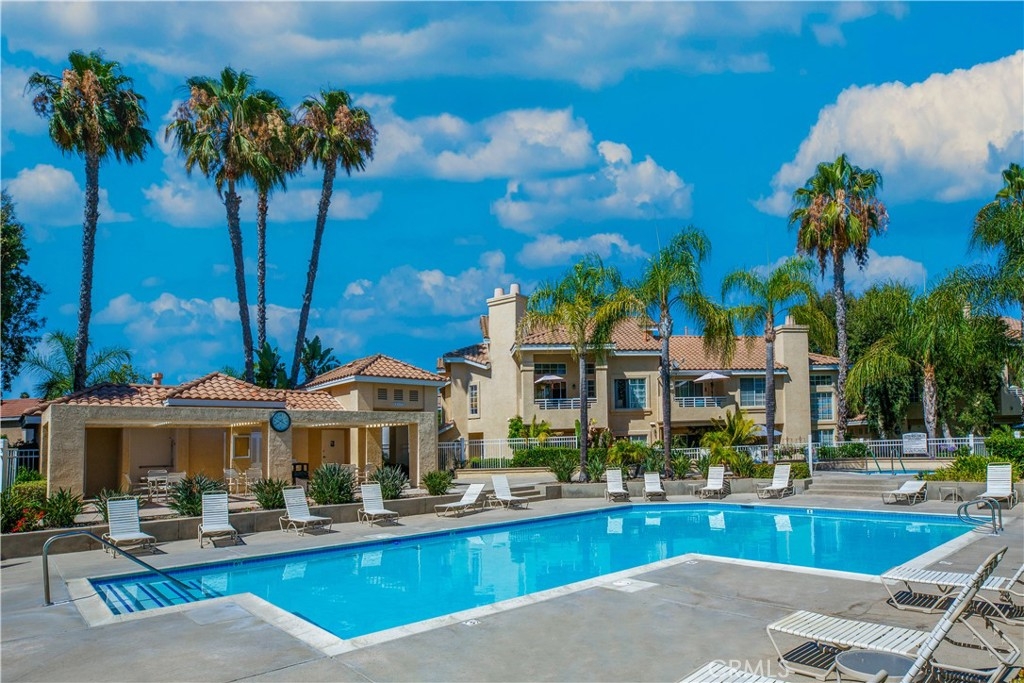 HIGHLY SOUGHT-AFTER PRIME END-UNIT TOWNHOME IN HIGHLY DESIRABLE DEL PRADO COMMUNITY. As you enter, Vaulted Ceilings in staircase opens to a spacious Open Concept living room, dining room and kitchen with several High Picture-Windows bringing in the sky’s bright and natural lighting, providing a cheerful and spacious ambiance to this home. Enjoy the Scenic Panoramic Views from the living room, the living room’s balcony, dining room and kitchen. Enjoy the cozy fireplace in the living room on a cool evening and an evening nightcap and view from the large balcony. This home also features inside, full-size laundry for side-by-side washer/dryer (included). The Spacious Master Bedroom also features vaulted ceilings. The Master Bathroom features Dual Sinks & New Fixtures. New ceiling fans, light switches, new paint, and new baseboards add to the upgrades. You’ll enjoy driving out from your attached one car garage to visit all the nearby Shopping, Parks, Restaurants, Schools, Gyms, Retail Stores and much more. Just walking distance to restaurants and cafes, Starbucks and a grocery store. This home also has great access to the wonderful association amenities, which include: two pools, two spas, a tot lot and greenbelts.