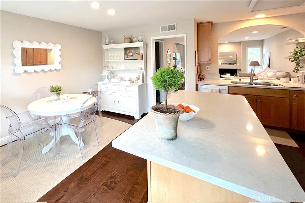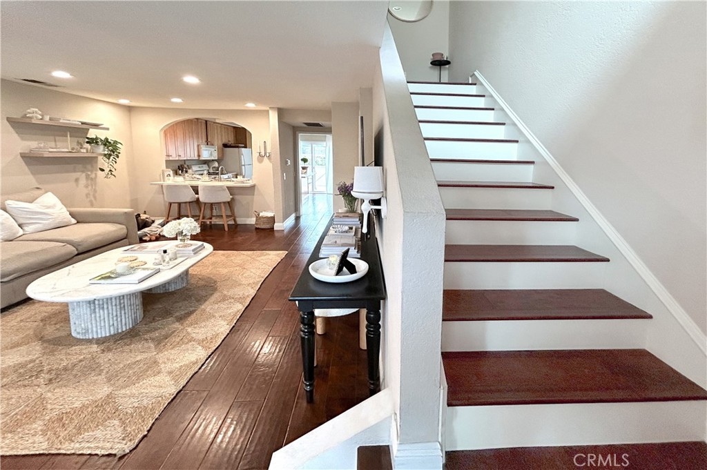 Welcome to this beautifully remodeled, sun-drenched home in the highly desirable Sparrow Hill. Offering a spacious and thoughtfully designed layout, this home backs to a private greenbelt—providing serene views and exceptional privacy with no one looking in. Step inside to discover a full-size custom kitchen that’s both elegant and functional, featuring stunning quartz countertops, a breakfast bar, a large eat-in area, and sleek custom cabinetry—perfect for entertaining or everyday living. The large family kitchen area opens to a charming brick patio that seamlessly connects to the garage entrance. Whether you’re hosting guests or enjoying a quiet evening, this indoor-outdoor flow is ideal. Natural light pours into every corner of the home, accentuating the beautiful wood flooring and stylish finishes throughout. The inviting living room centers around a cozy fireplace and has ample room for casual elegant living. The show-stopping custom wood staircase with white risers adds warmth and character to the home’s design. Upstairs, retreat to the spacious primary suite complete with a second fireplace, huge walk-in closet and accented with light filled windows and classic plantation shutters. Upstairs has an additionally large secondary bedroom with oversized wall-to-wall closet and large windows letting in tons of natural light. The upstairs is completed by the large full bath with white cabinetry and quartz counters. There is also upstairs laundry. Additional features include ample storage beneath the stairs, elegant shutters throughout, direct garage access through the patio, and a highly convenient assigned parking spot located right next to the garage. The neighborhood offers a pool, spa and tennis court- so bring your game and then relax by the pool! This light-filled, move-in-ready gem has everything you need—don’t miss your chance to call it home. Schedule your private showing today!