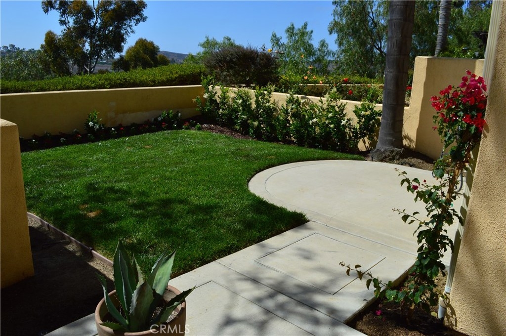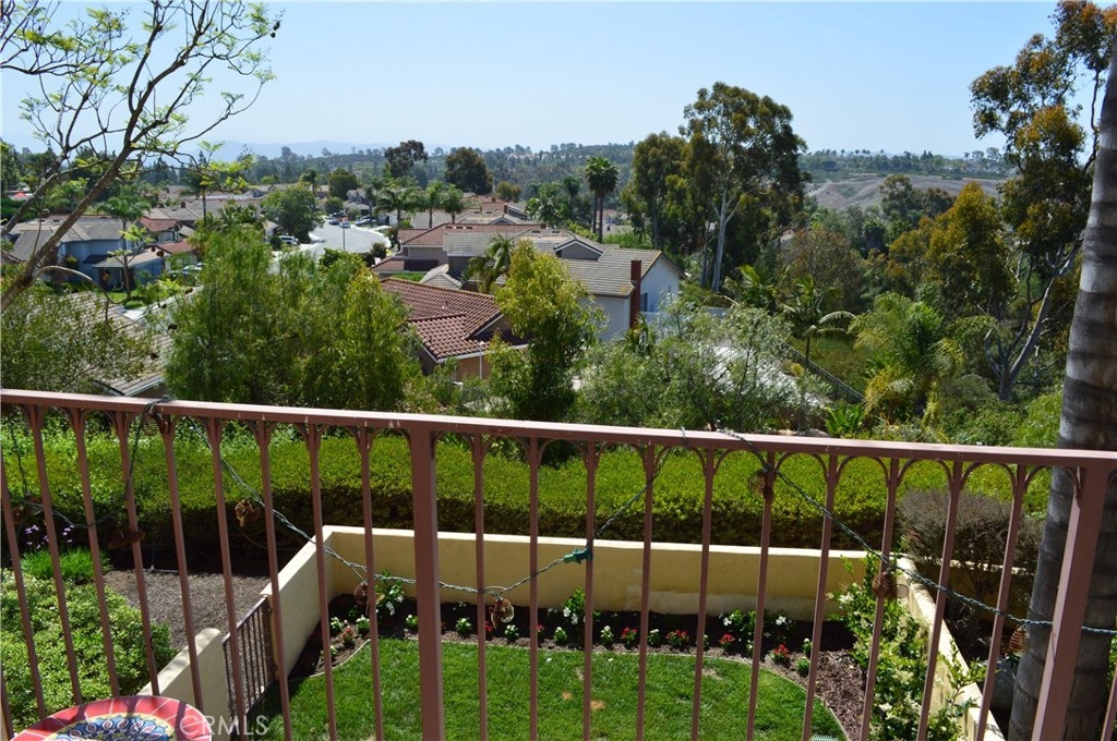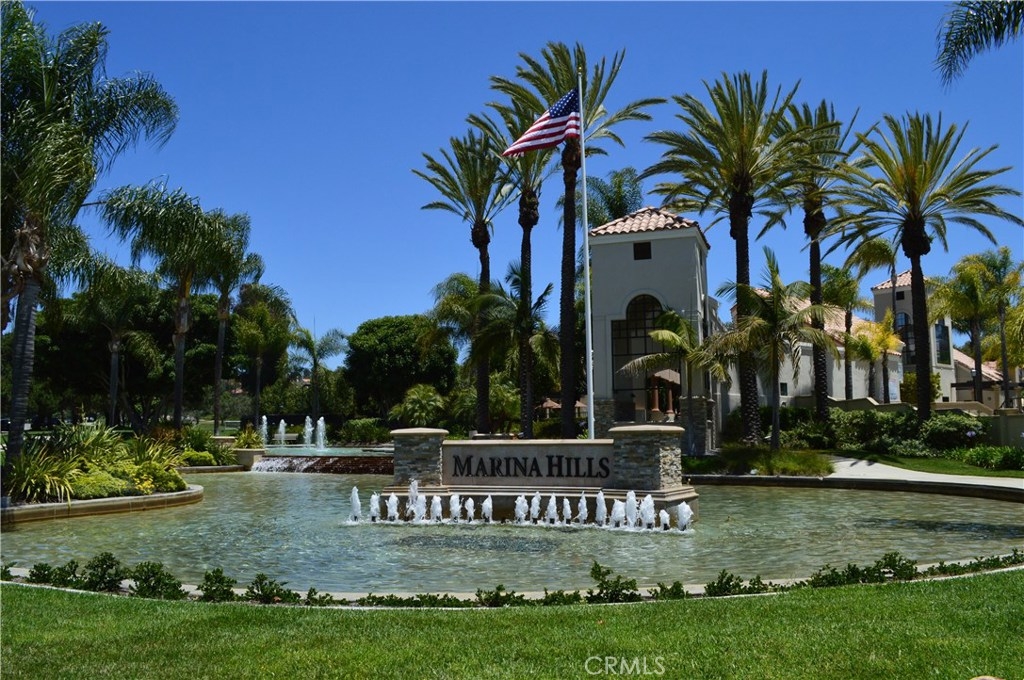 BREATHTAKING VIEW TOWN HOME with DUAL MASTER SUITES. Enjoy the ocean breeze in your private grassy back yard. Full-length driveway on a cul de sac in the prestigious Marina Hills’ community of Encore. This townhome boasts one of the best locations within Encore at the edge of a long greenbelt with panoramic views of the hills, mountains and stars at night. Light bright open kitchen. Large living room and separate dining room with a designer ceiling fan plus a cozy fireplace to be enjoyed from both rooms. Easy access to the back yard from both the living room and dining room. Direct access two-car garage, inside laundry with built-in storage shelves. Downstairs guest bath. Wood floors on lower level (partial). Custom Ethan Allen window coverings throughout. Master Bedroom suite includes full bath with tub and shower, dual sinks, slate flooring. Bedroom has vaulted ceiling, motorized solar shade and relaxing balcony to enjoy the breezes and views. Second master suite also includes a full bath and vaulted ceilings. All new landscape including sprinkler pipes and heads and wired for landscape lighting. Short walk to the Encore Community pool area. Also enjoy Marina Hills’ community pool, six tennis courts, BBQ area and large park. Easy access to shopping: Albertsons, Starbucks, CVS, etc. Close to hiking and biking trails and short drive to Dana Point Harbor, Salt Creek Beach, etc.
