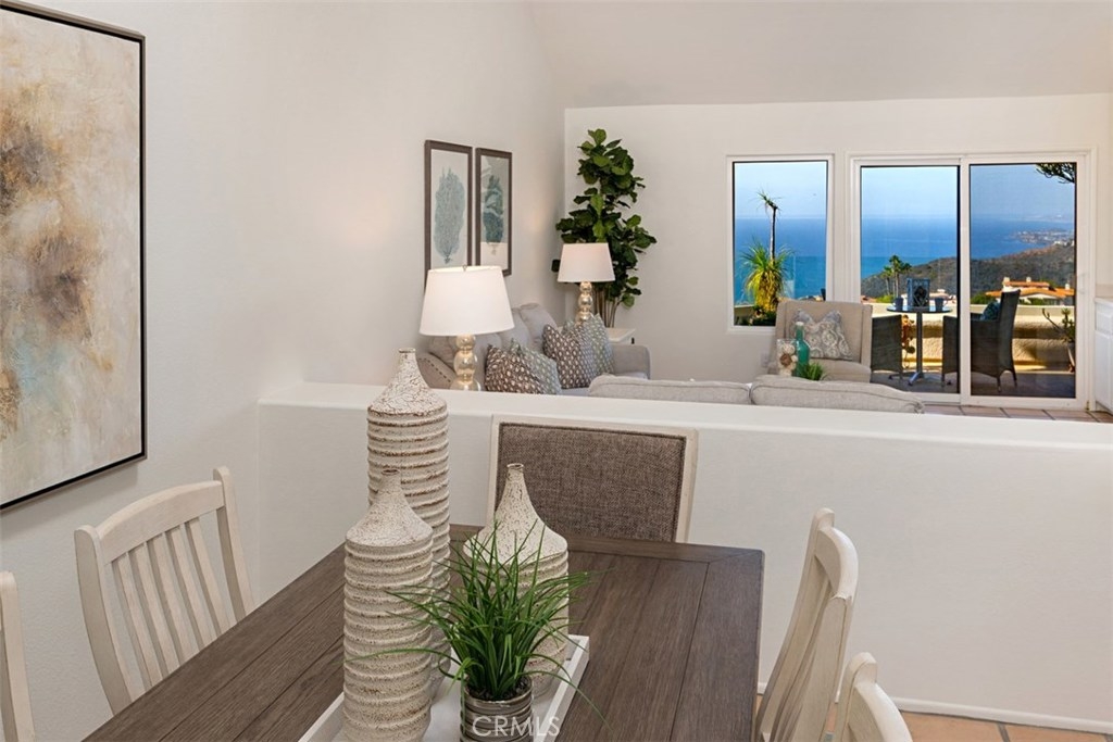 Floating above picturesque Laguna Beach, the awe-inspiring views of Catalina Island, the azure blue Pacific Ocean, white water waves and canyon views from this coastal paradise will take your breath away. Views stretch from Laguna Beach to Palos Verdes. The premier, front row location maximizes the opportunity to capture all the views throughout the generous living spaces and perfectly situated decks. Enter the home through the private courtyard and open the front door to a thoughtfully designed sanctuary for entertaining and coastal living with a gorgeous vaulted ceiling, skylight and open living and dining room floor plan. Day time light glints off the ocean horizon and evening lights sparkle from the surrounding hills, displayed in stunning fashion from spacious windows in the dual living rooms and master suites. Beautifully done, the 2-bedroom design includes two full baths plus two half-bathrooms. MAIN FLOOR MASTER Laguna Sur, in which this home resides, is a resort-like guard gated community offering pools, tennis courts and access to some of the best ocean view hiking anywhere. The home’s prime location is within close proximity to the Gold Coast’s desirable beaches – 1000 Steps, Aliso Beach and West Street Beach, resort hotels Ritz Carlton, Monarch Beach Resort and the Montage, as well as the area’s notable eateries, boutique shopping, and cultural entertainment venues.
