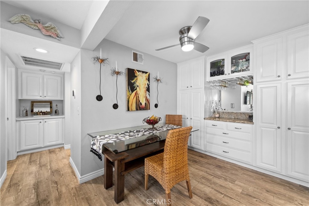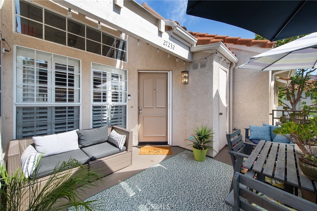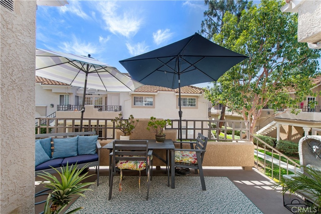 One Bedroom PLUS A LOFT for an office or second living area. The upgrades and updates are gorgeous in this upper level unit with no one above you. You also enjoy wonderful quiet and privacy with the home located in the interior of the complex. This condo is flooded with natural light from the well placed windows and vaulted ceilings. The kitchen has been upgraded with beautiful Granite Counters, White cabinets and Stainless Steel appliances. There is so much storage with the many cabinets in the kitchen as well. Property has a newer Air Conditioning Unit. Living space has a small bar area and boasts plenty of storage in the unit. There are two closets in the primary bedroom; one is a walk-in. The bathroom has been beautifully updated in the latest trends as well. Close to plenty of dining and shopping. Located twenty minutes away from the beach and Dana point harbor close to the 5 and 73 freeways. HOA includes trash and water.