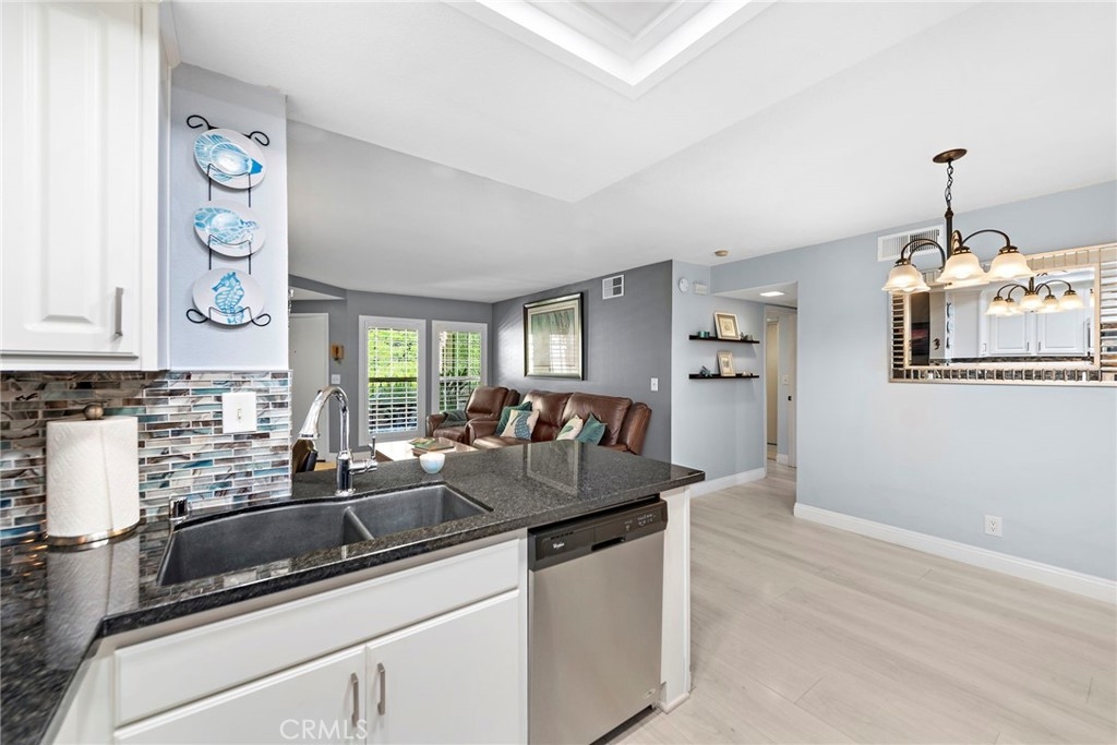 Welcome to your charming retreat nestled in the serene community of Village Niguel Terrace ll, in beautiful Laguna Niguel. This cozy 1-bedroom, 1-bathroom condo spans 685 sqft of beautifully updated living space. Step inside to discover the spacious kitchen adorned with pristine white cabinets, stylish countertops, a complementing backsplash, and enhanced by can lights and fixtures that illuminate the space. The flooring has been thoughtfully upgraded to laminate, offering both durability and aesthetic appeal. Outside, unwind on your own private patio, perfect for enjoying quiet mornings or relaxing evenings. Located in Laguna Niguel, known for its picturesque surroundings and convenient proximity to shops, dining, and outdoor recreation, this residence offers not just a home, but a lifestyle. Don’t miss the opportunity to make this tranquil retreat your own.
