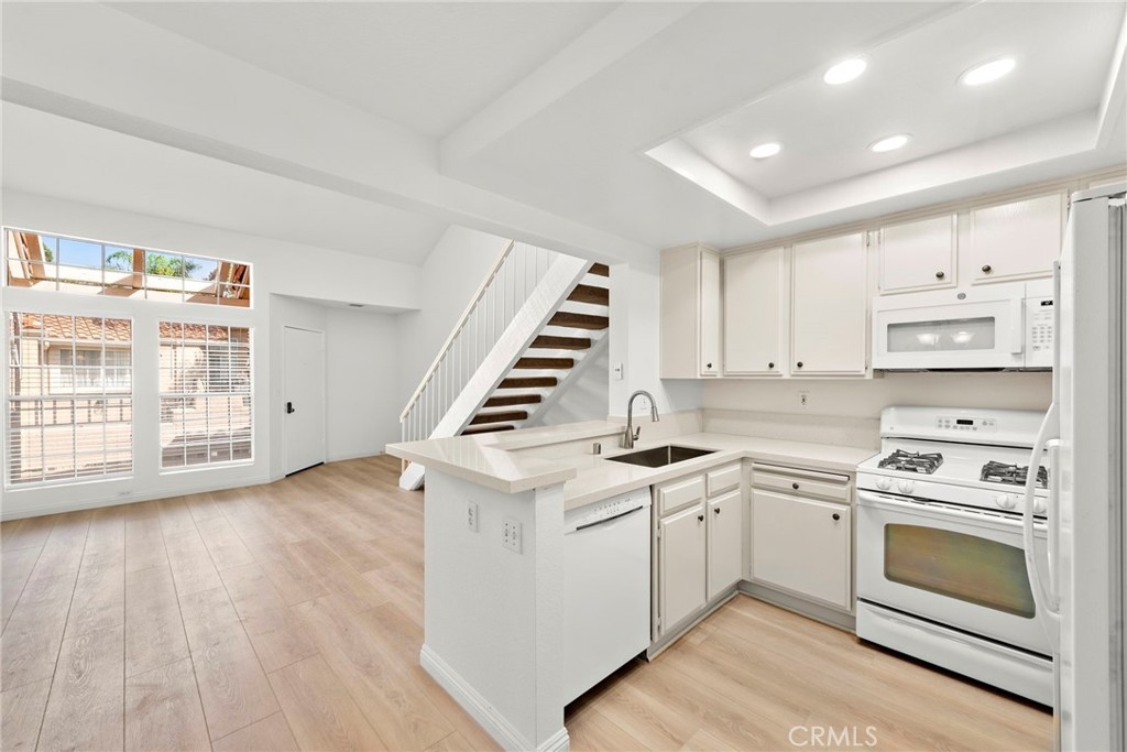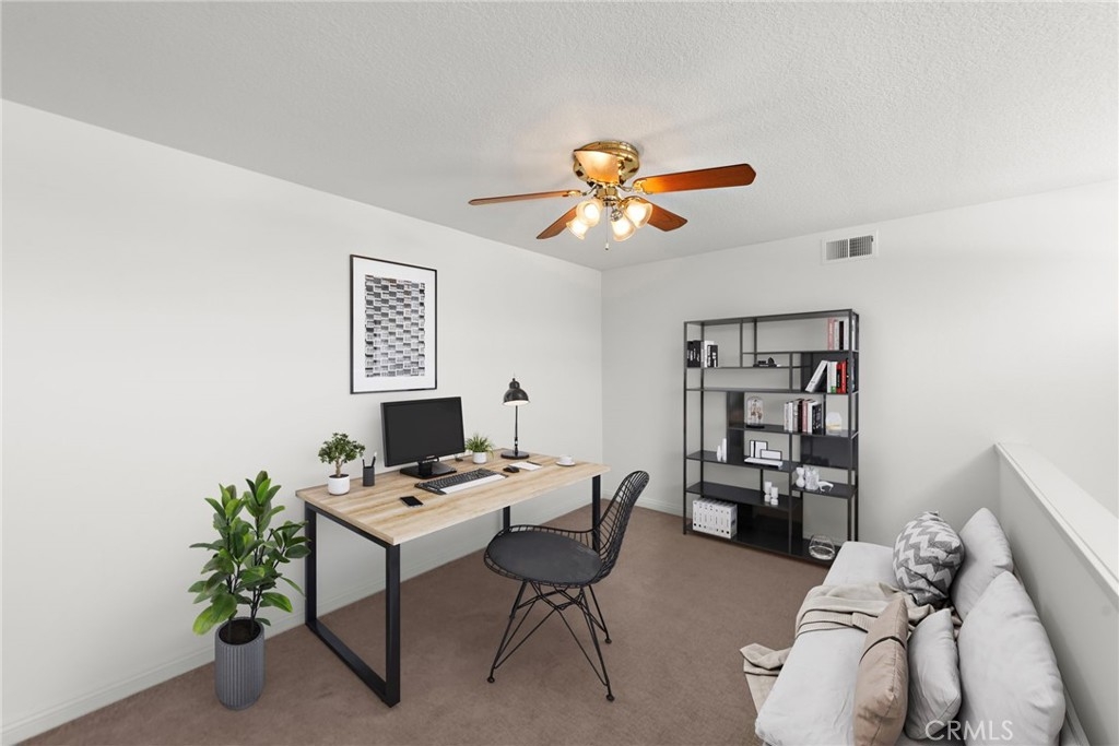 Just Refurbished 1 bar/1bath PLUS LOFT/OFFICE in desirable Village Niguel Terrace II community. Upstairs unit with NO upstairs neighbor. Main level living space with upstairs LOFT ideal for a home office. NEW Paint throughout. NEW Luxury Plank Vinyl downstairs and NEW carpet on staircase and in Loft. New Quartz countertops in kitchen, bath and hallway. Spacious living room with adjacent dining area. Kitchen with gas range, dishwasher, microwave, disposal and new kitchen sink with new kitchen faucet. Refrigerator included without warranty. Spacious bedroom with walk in closet. Full bath with tub and shower, new mirror, new toilet and new faucets. Inside laundry closet with stacked washer and dryer. Large front balcony with lots of space for outdoor enjoyment overlooks greenbelt. Nearby one car garage, #198 , has opener. Gated community with pool and spa. Master community amenities include pool, spa, tennis courts, baseball diamond and dog park. Fantastic location. Walk to shopping and easy access to both 73 and 5 freeways. Move in Ready!
