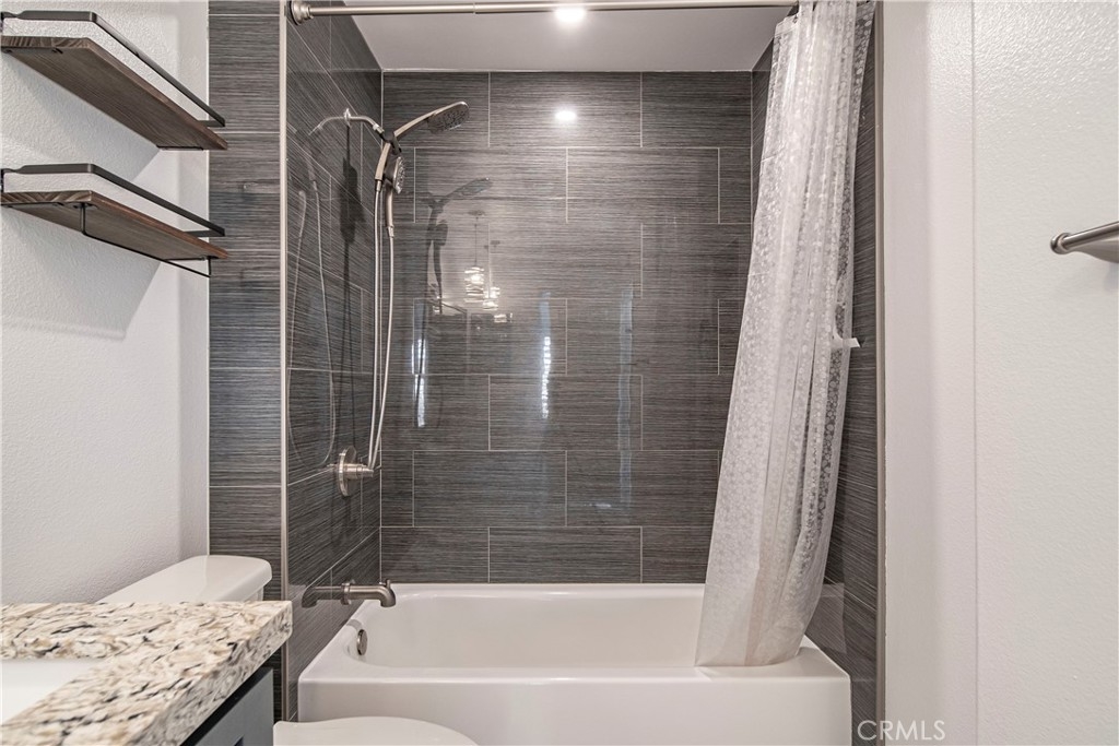 Adorable remodeled condo in desirable Del Prado Community. Nice private end unit with direct garage access from the first floor. Open floor plan with high ceilings and lots of windows making it bright and airy. Large living room with cozy fireplace surrounded by slate stone. Plantation shutters throughout the unit and beautiful plank flooring. Nice U Shape kitchen with granite countertops, subway backsplash, recessed lights and stainless steel appliances. Beautifully updated bathroom with dual sinks, new cabinet, new bathtub tiles & new fixtures. The main bedroom has a picture window with plantation shutters, ceiling fan, barn door access to bathroom and huge walk-in closet. Nice balcony off the living room with artificial grass, perfect to grill and relax. Gigantic attic space for storage with easy access through a pulldown ladder in bathroom. Convenient inside laundry closet (washer and dryer are included). The HOA dues include water, trash, access to two pools, spa, neighborhood park and lofts of open space green areas. Close to shopping, theaters, restaurants and minutes away to beaches and resorts. A delightful condo to call home! Won't last!