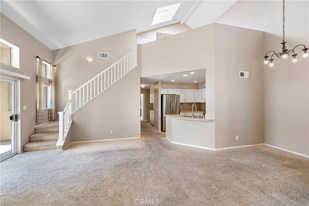 Presenting an excellent location at Del Prado in Laguna Niguel, this extra open and bright condo displays dramatic ceilings and a versatile floorplan. The three-level arrangement features an attached two-car garage on the first floor, an airy bedroom/loft with a skylight on the top floor, and a main level that is primed for living and entertaining in style. Ceilings soar over the living and dining rooms, where a contemporary fireplace and a sunny balcony are proudly displayed. Solid-surface countertops and white Shaker cabinetry enrich an upgraded kitchen with a breakfast bar and stainless-steel appliances. Approximately 1,658 square feet, the residence is home to two baths with picture-frame mirrors, and three bedrooms including an oversized secondary bedroom with mirrored wardrobe doors. Double doors introduce the grand primary suite, complete with a three-sided fireplace, vaulted ceiling, balcony access, a separate retreat, a walk-in closet and dual sinks. Del Prado features a resort-inspired pool and spa and a tot lot. The Center at Rancho Niguel is just down the street, and a supermarket, Laguna Niguel Regional Park, award-winning schools, and miles of sandy beaches are within easy reach.