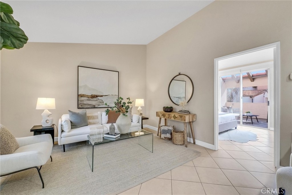 Best Location Laguna Niguel One Bedroom Condo! Terrific owner or investor unit! Super clean -- Move In Ready. Upgraded upper one bedroom in Milano at Rancho Niguel -- with a Large semi-covered deck right off the bedroom. Close by individual end unit garage with extra storage. Air Conditioning. A very nice location in a great neighborhood. Best location in the community: a wonderful quiet spot with lots of trees. Enjoy the view from the living room into the surrounding greenery. High Ceilings. Upgraded fixtures and lighting throughout. Stainless appliances. Refrigerator. Gas cooktop with griddle. Remodeled bathroom and kitchen areas. Inside laundry with stackable front-load washer and dryer. Large walk-in closet with attic access. Community EV charging stations. The Milano community is very close to the movie theatres and restaurants, conveniently located near large and small shopping, MV mall, additional theatres, major transportation corridors, Parks & recreation and hiking trail. And close by the local beaches, Dana Point Harbor, Laguna Beach, San Clemente and the Mission in San Juan Capistrano.