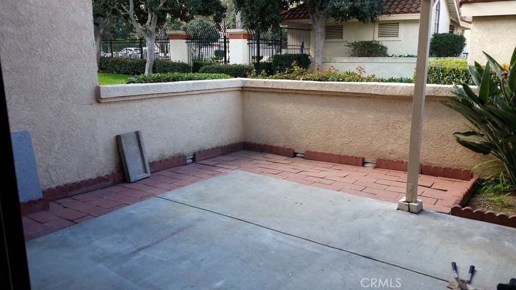 Lovely Villamira ground level condo with no stairs in or directly at the unit. This unit has been freshly painted throughout and all of the flooring is completely Luxury Vinyl Tile, with taller baseboards. The kitchen features a near new gas range and oven, stainless steel "farmers sink", dishwasher and garbage disposal along with a new vent fan over the range. The kitchen has a lot of cabinet and storage areas. A refrigerator has been provided for the sale but is not warranted. The master bath has a connected .75 bath with a double wide shower complete with newer glass doors. The master bedroom is quite large and will handle a lot of furniture. The closet also has sliding glass doors. The secondary bedroom is good size and has a door leading directly to the rear yard. There is a large full bath directly down a short hall complete with shower over tub. The rear yard is completely enclosed with a stucco wall that is 4+ feet tall, just right for maintaining a smaller dog. The rear yard also overlooks the community pool, which is just steps away.