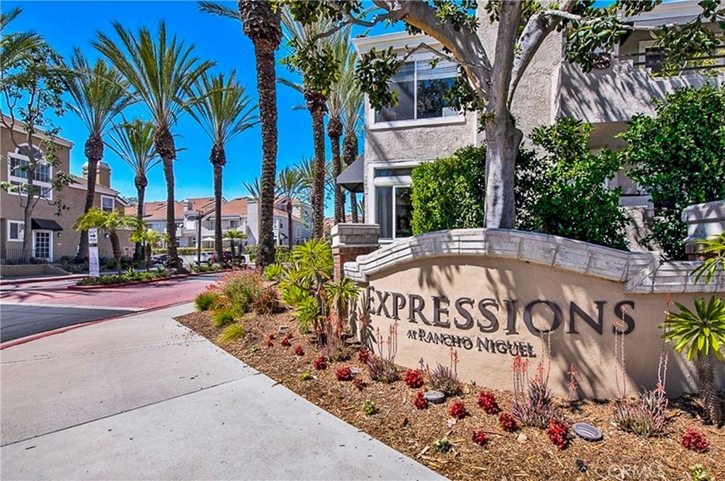 LAGUNA NIGUEL'S HIGHLY DESIRABLE "EXPRESSIONS" AT RANCHO NIGUEL OFFERING A MUST SEE, LOVELY 1 BEDROOM, CARRIAGE STYLE TOWNHOME. 1 car attached direct access garage. Walk upstairs to main level into a large great room with soaring ceilings and tons of windows for natural light. Laminate floors, gas fireplace, and large balcony for outside dining and lounging. Upgraded kitchen with recessed lights, stainless steel appliances, gas burners, and built in stainless microwave. The kitchen opens to dining and great room. The master suite has huge bathroom with large walk-in closet, huge garden tub with shower, double sinks and laundry closet for washer and dryer. This home located in Expressions community offers luxurious pool, jacuzzi, BBQ, eating, and lounge area. Community backs to a greenbelt with gorgeous views and is in walking distance to trails, parks, restaurants, shops, movie theatre, and short drive to beach. Conveniently located off of I-73 and I-5. HOA covers water, sewer, trash.