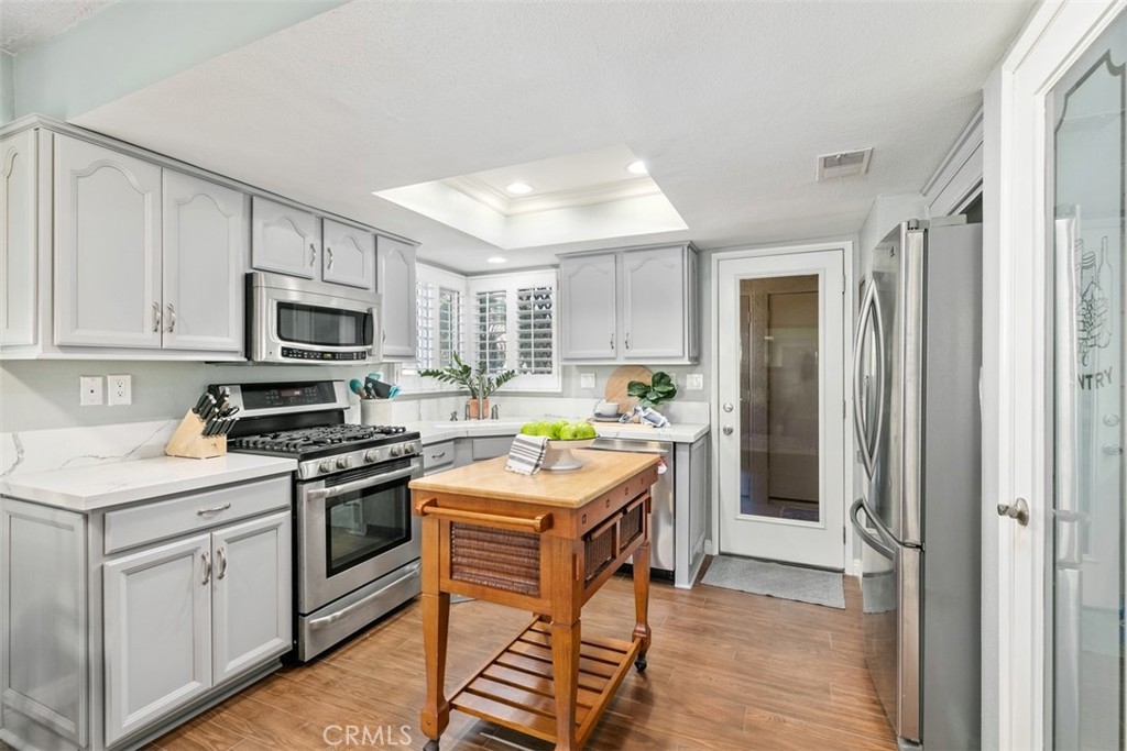 NO STEPS OR STAIRS, SINGLE LEVEL, PRIVATE GARAGE, PEX RE-PIPE & MORE! Introducing 28201 Sorrento #119 nestled inside the beautiful Community of Villamira. This meticulously maintained home features a light and bright interior, wood-look vinyl plank flooring throughout (no carpet!), dual pane windows, plantation shutters, convenient laundry atrium, new heater & air conditioner (2019) and new water heater (2021). The kitchen with walk-in pantry, quartz countertops, wood-look tile flooring, stainless steel appliances and a 5-burner gas range is open to the family room creating the great-room concept everyone is looking for! Your private patio space with courtyard view is right off the family room allowing for several entertainment options while hosting a gathering of family and friends. The master suite has its own ensuite bathroom with walk-in shower and also features access to your patio space. Two additional bedrooms and another full bathroom with walk-in shower complete this lovely home. Enjoy your own private finished garage with high, vaulted ceilings allowing for multiple storage options. The Villamira community offers two sparkling pools and spas, a clubhouse and beautifully maintained grounds. The community has been freshly painted, has a new roof and rain gutters and is FHA and VA approved. LOCATION, LOCATION, LOCATION! Conveniently located within close proximity to The Shops at Mission Viejo, Costco, grocery stores and retail shops as well as walking and biking trails, the freeway & toll road, and is only a short drive to world class beaches, 5-star resorts, Laguna Beach, Dana Point Harbor, the Lantern District, & MORE! This home captures THE BEST OF ORANGE COUNTY LIVING. Welcome Home!