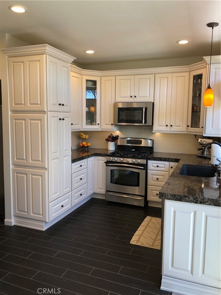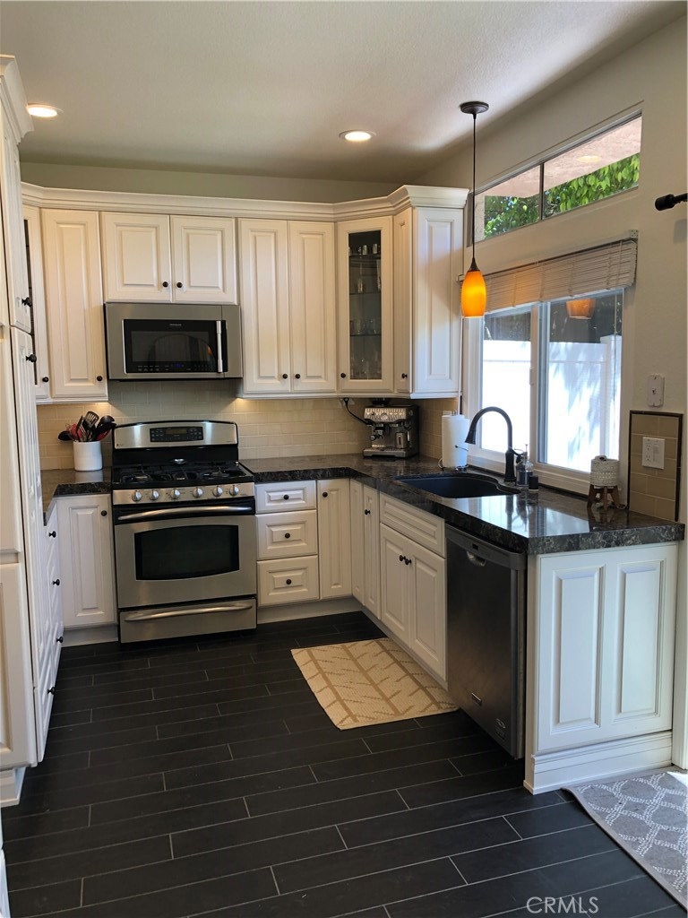 BIG price improvement Private corner unit with access to the side park area. This property has a double master upstairs! 2 bedrooms, 2.5 Bathrooms Condo No one above, below or behind you, located in the charming gated community of Bridgeport Terrace. The private entrance leads into the spacious living room with a fireplace to warm up to on those colder nights. The kitchen was remolded & features new cabinets, quartz counters, recessed lighting, amazing storage areas. Enjoy your outdoor private patio which backs up to a little park. Perfect for kids or pets. HOA includes cable, trash, ext. maintenance, lush landscaping, pool, spa & BBQ area. The unit comes with a one car garage and 1 assigned parking spot. Short drive to the beach close proximity to entertainment, shopping and freeways. remodeled unit turn-key ready ! Laundry room upstairs with access to both master suits. Dont miss this beautiful Bridgeport Terrace unit. The owner is looking at all offers