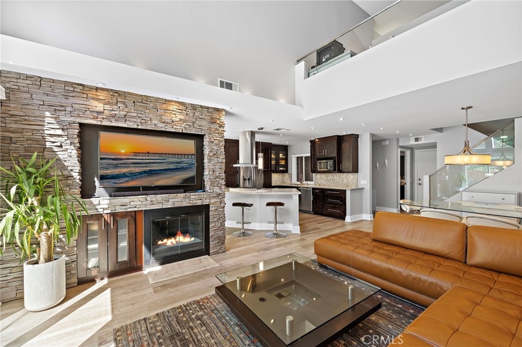 New Year, New Opportunity. As you enter this home it continues to impress with its modern design updates. In addition to its spacious 2-bedroom-plus-loft layout and upscale finishes, the home has been enhanced with several contemporary touches. As you enter the home you notice all the natural light and the beautiful stack stone fireplace. Modern Recess lighting provides ambiance in the evening. The loft features glass walls paired with stainless steel elements, creating a bright and airy feel that aligns with modern design trends. This home has luxurious vinyl plank flooring. The kitchen is a cook's dream, offering a large island, seating for 6, perfect for cooking and entertaining guests. Kitchen also offers stainless steel appliances and a cooktop. There is inviting outdoor spaces like the upstairs private balcony and upgraded paver patio area. This property offers both comfort and style in a highly desirable location at Niguel Summit in the Jamaica Community of Laguna Niguel. The spacious 2 car garage has epoxy floors and plenty of storage. This Community offers easy access to the Aliso Summit Hiking Trail with it's beautiful views of the Ocean and Surrounding Hills. Community Pool and Spa provide outdoor enjoyment year around. Dana Point Harbor and Laguna Beach are close by for dining and beach lovers.